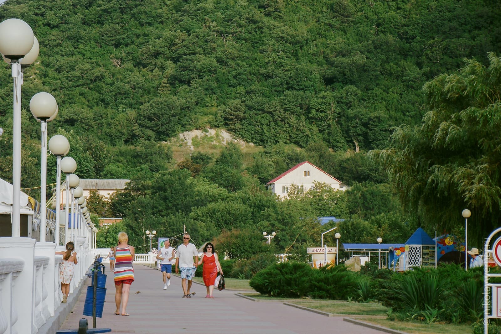 Вообще, в курортных посёлках 90% процентов того что недавно сделано руками человека ужасно. Порой отвратителен каждый сантиметр. Но тут мне удалось выцепить очень даже милую композицию.
