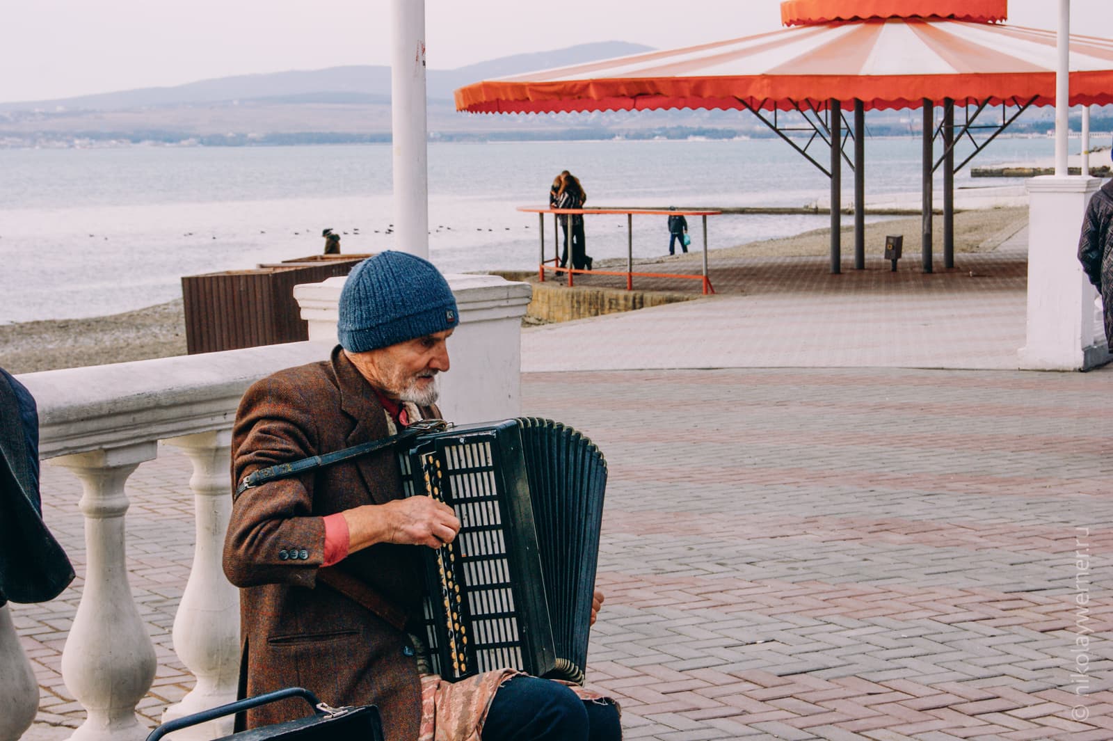 Под тоскливую мелодию уличного музыканта.
