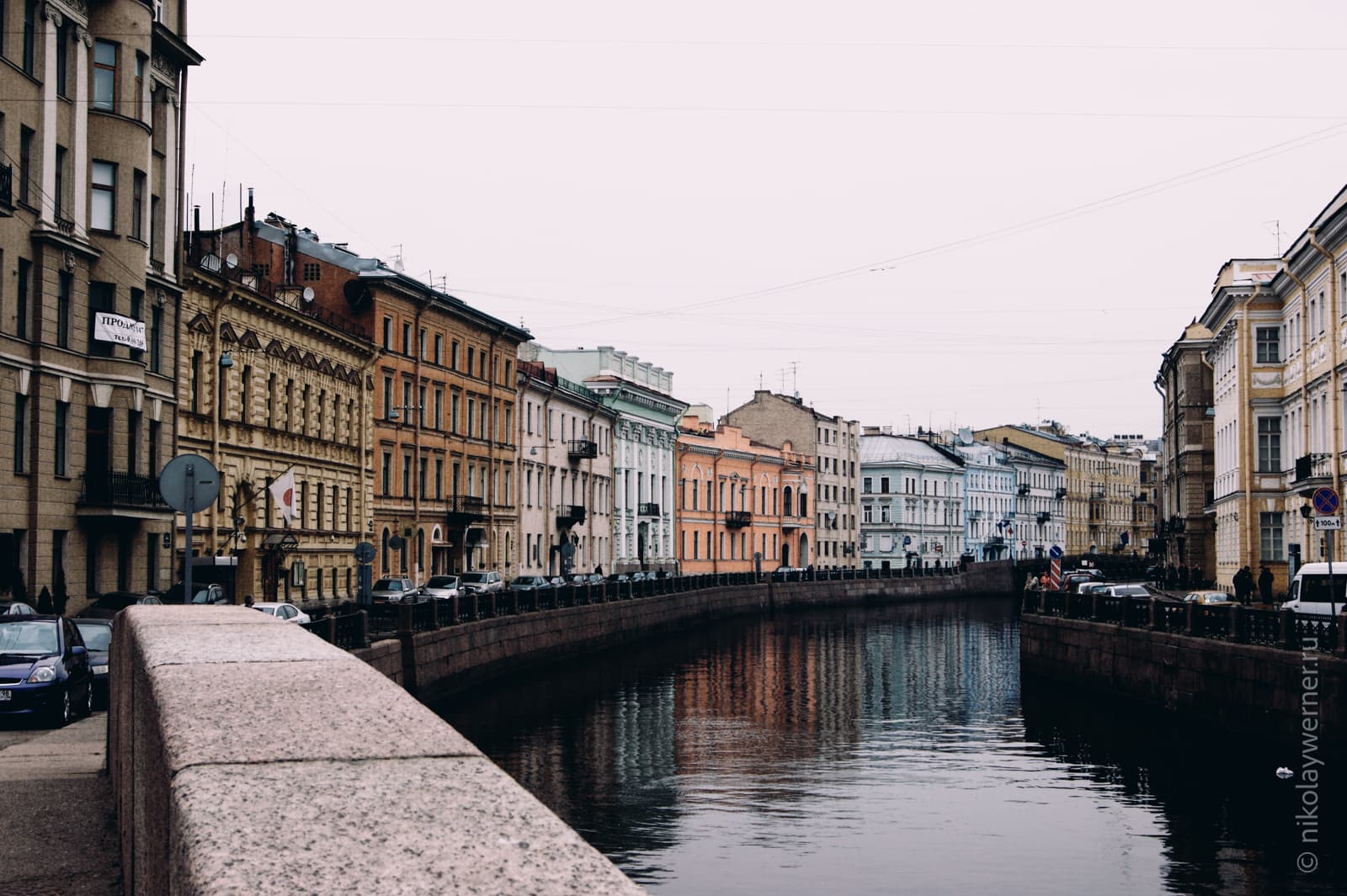 После обеда совсем похолодало и мы поспешили в гостиницу. Но там тоже было интересно. Окна номера выходили на канал Грибоедова, к Казанскому собору. В наличии был широченный низкий подоконник, который мы превратили в общественное пространство и долго наблюдали за жизнью под окнами — прелюбопытнейшее занятие.