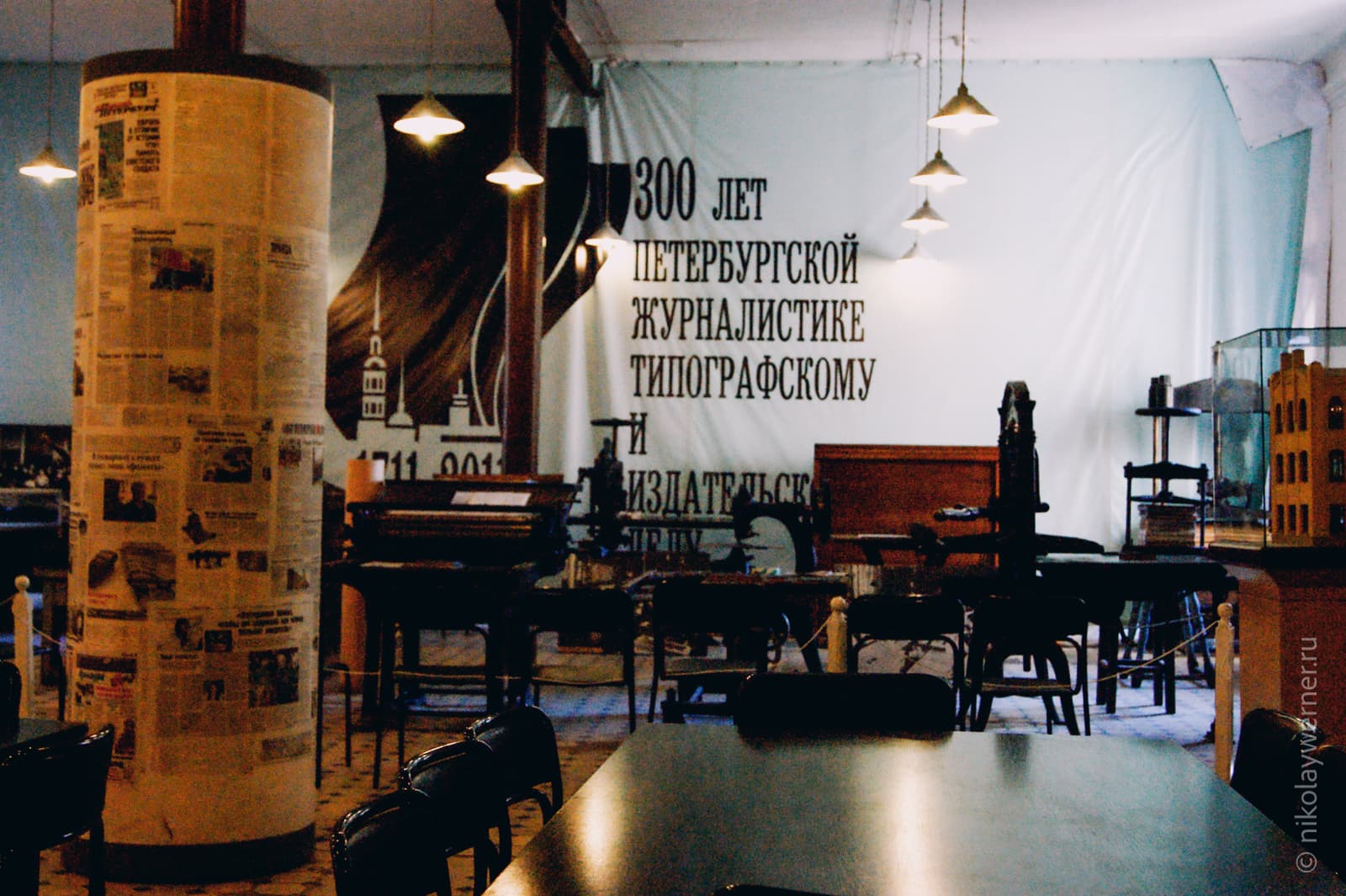 Зашли в книжный магазин на набережной реки Мойки и узнали, что за ним есть музей печати. Туда и отправились.