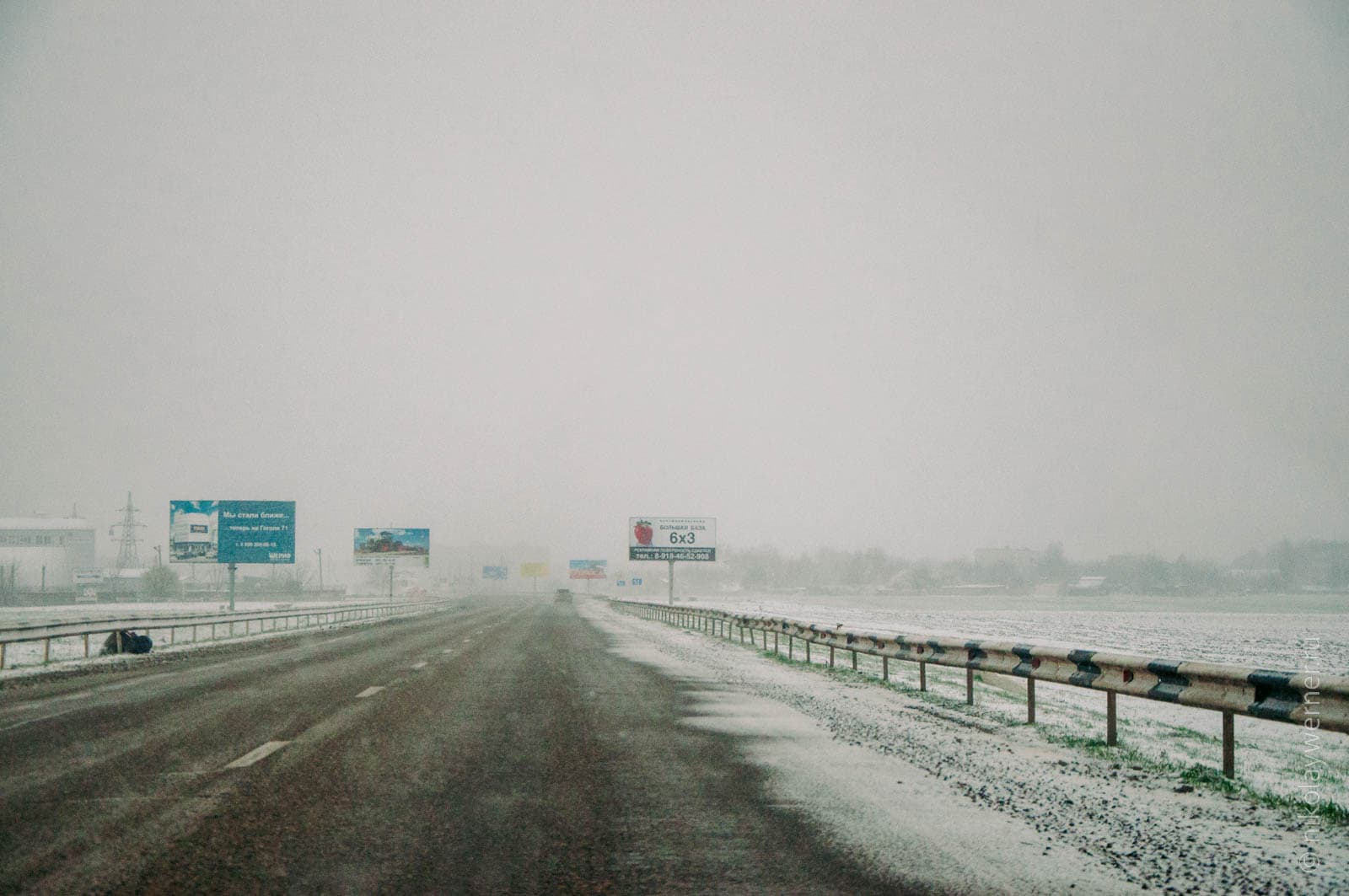 Выехав с утра не поверили, что мы на юге и что на календаре конец марта. За окном настоящая метель и небольшой мороз.