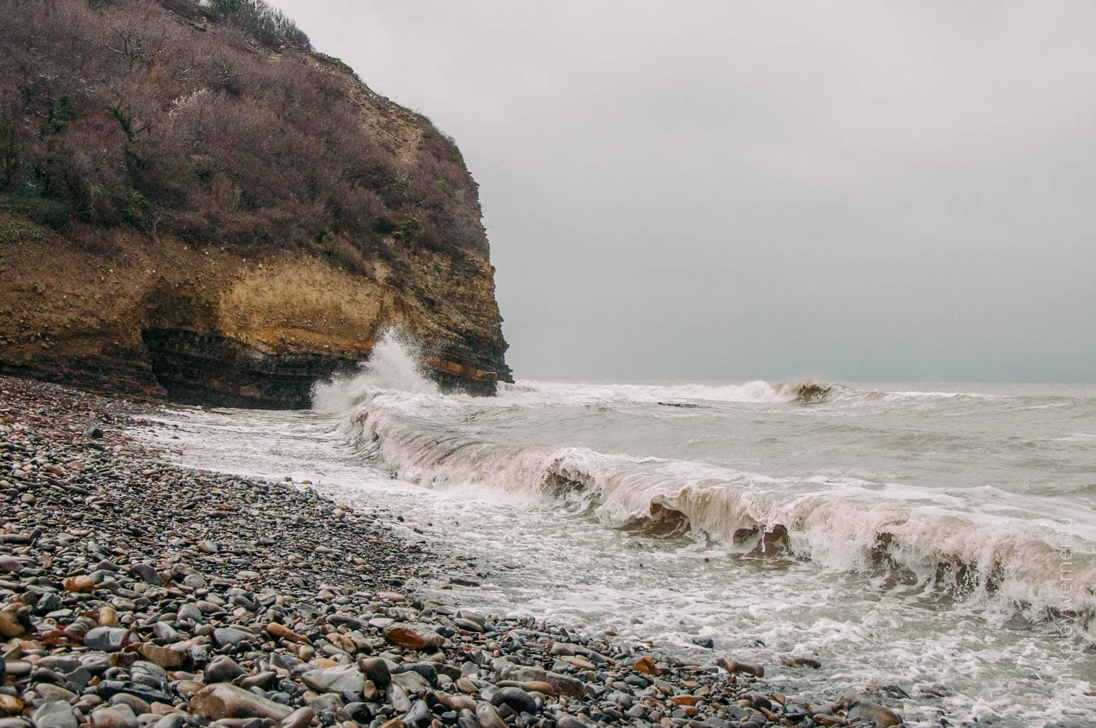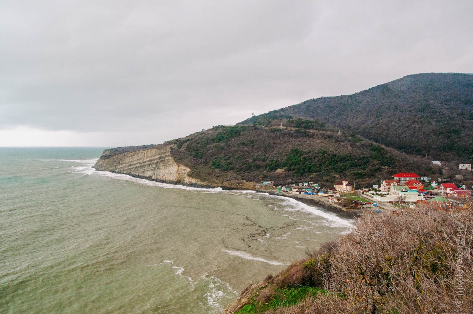 Из Новороссийска путь лежит в Дюрсо. Дюрсо встретило по-настоящему зимним морем, несмотря на март, жутко грязным пляжем (увы без фотоподтверждения)