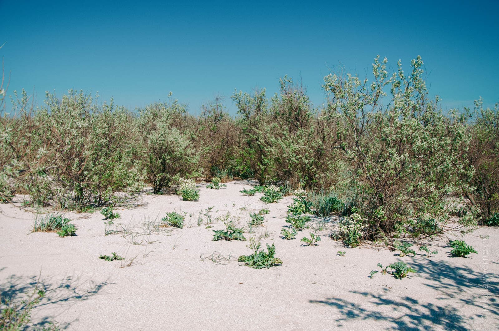 А вот кустарник, который начинается сразу за относительно широкой полосой песка.