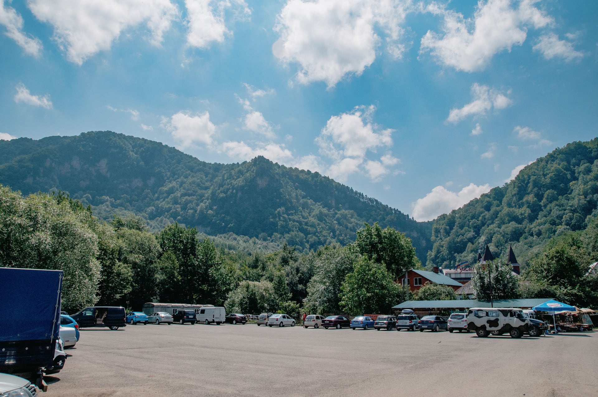 Ущелье — выдающийся природный объект и при этом благодаря шоссе доступный каждому. Оттого вся территория у входа застроена: гостиницы, базы отдыха, парковки, кафе.