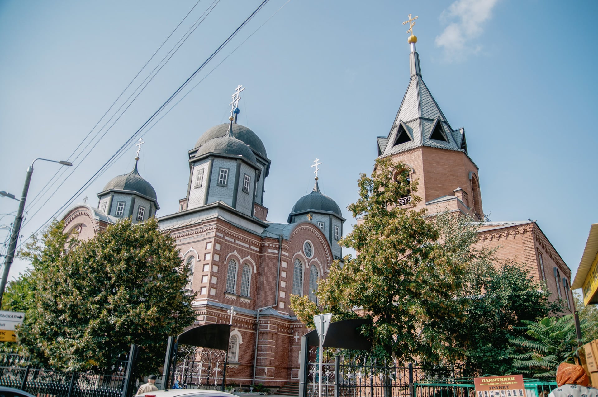 Возле рынка есть церковь. Сама церковь построена в начале прошлого века, а вот колокольня рядом с храмом достроена совсем недавно. Церковь с претензией на красоту. Претензия принята, но частично. Уж больно «картонно» выглядит всё, что не из кирпича.