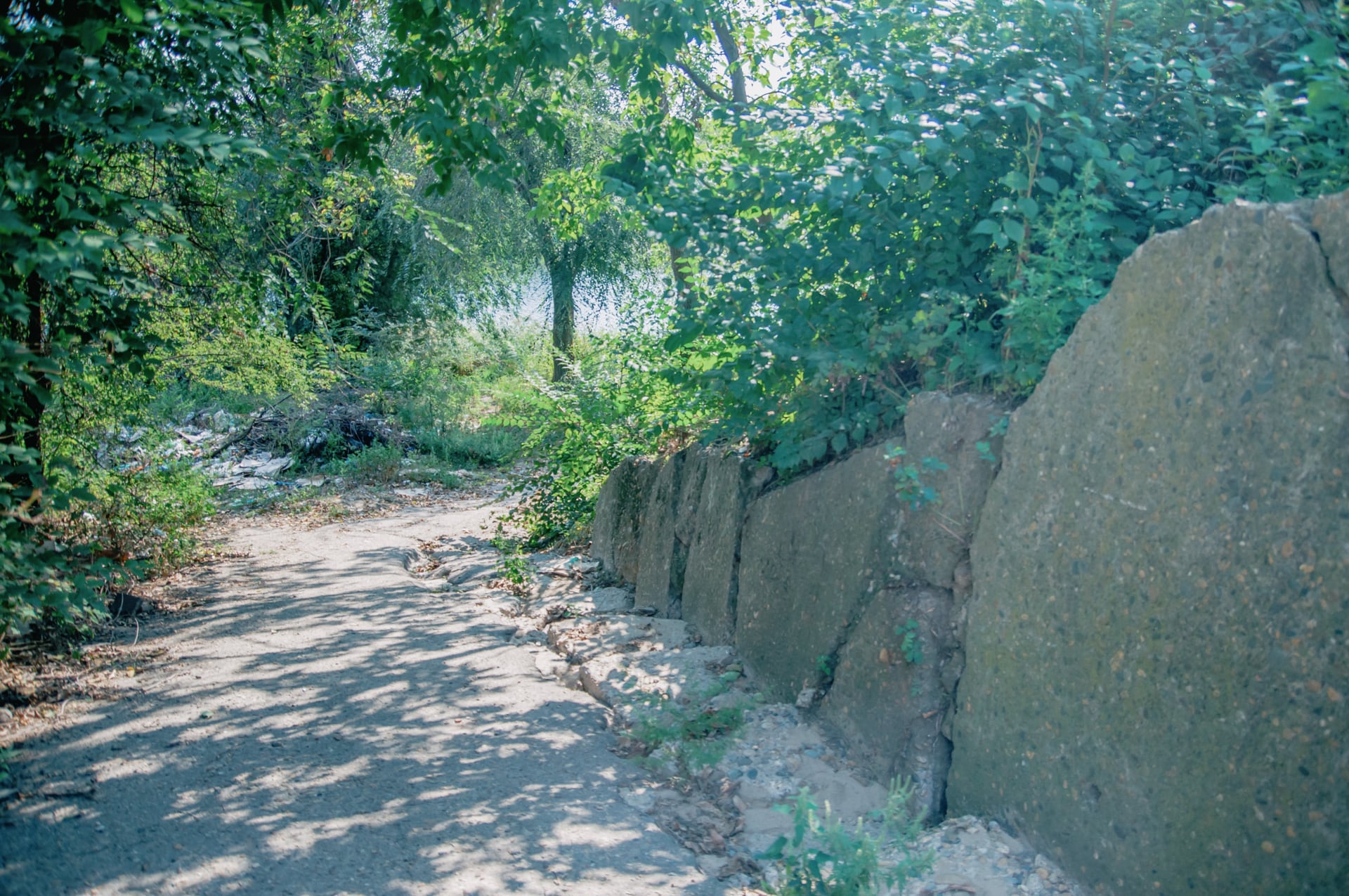 Сразу за переходом ждёт нечто, напоминающее парк, посередине которого стоит кусок бетонной трубы, зачем-то огороженный заборчиком. Оказалось — памятник расстреляным в годы войны.