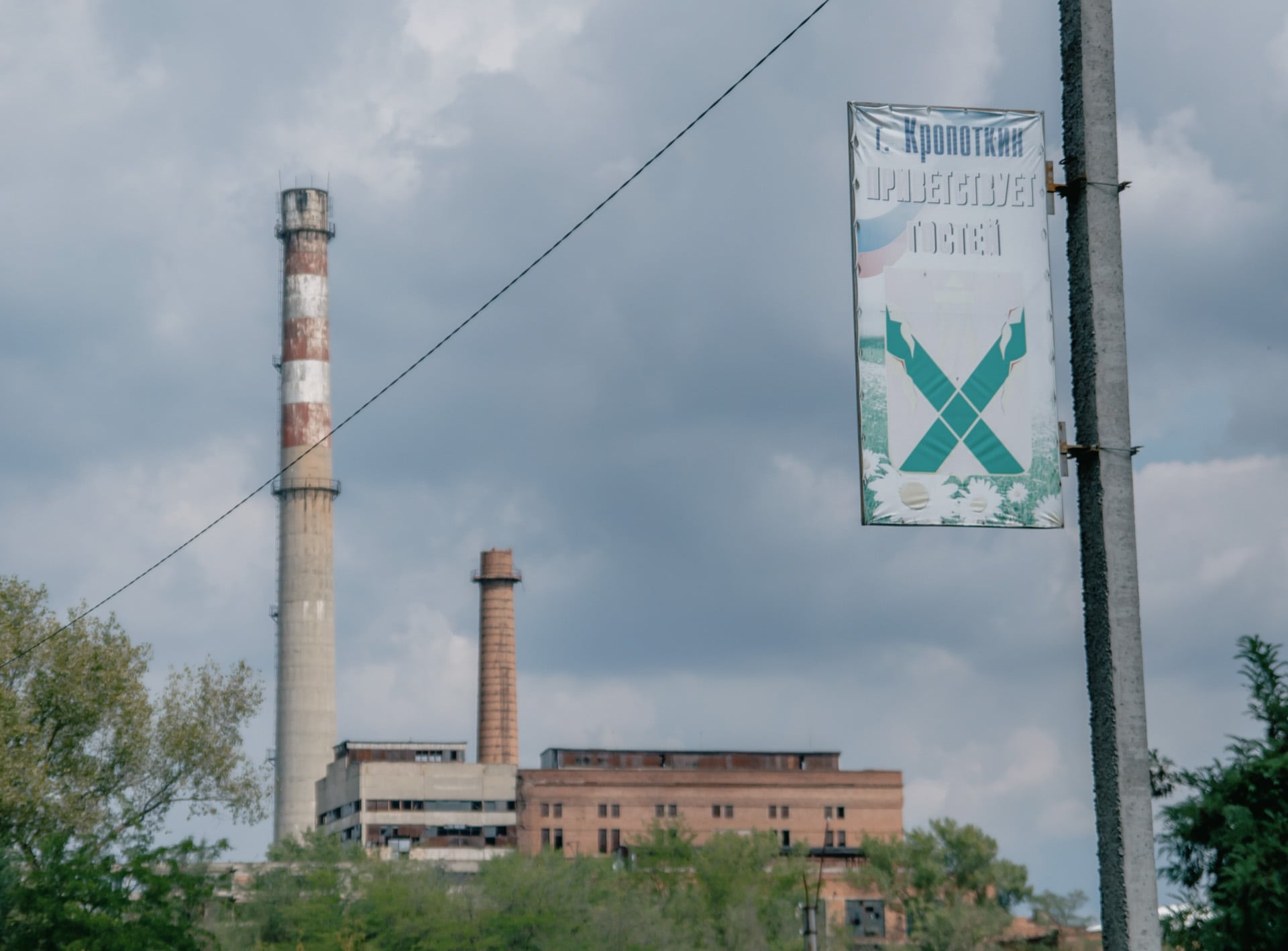 Кстати, это уже другая окраина. Кропоткин приветствует гостей скелетом химического комбината, некогда одного из градообразующих предприятий. Если-бы не железная дорога, то закрытие этого предприятия могло бы стать смертельным для города.
