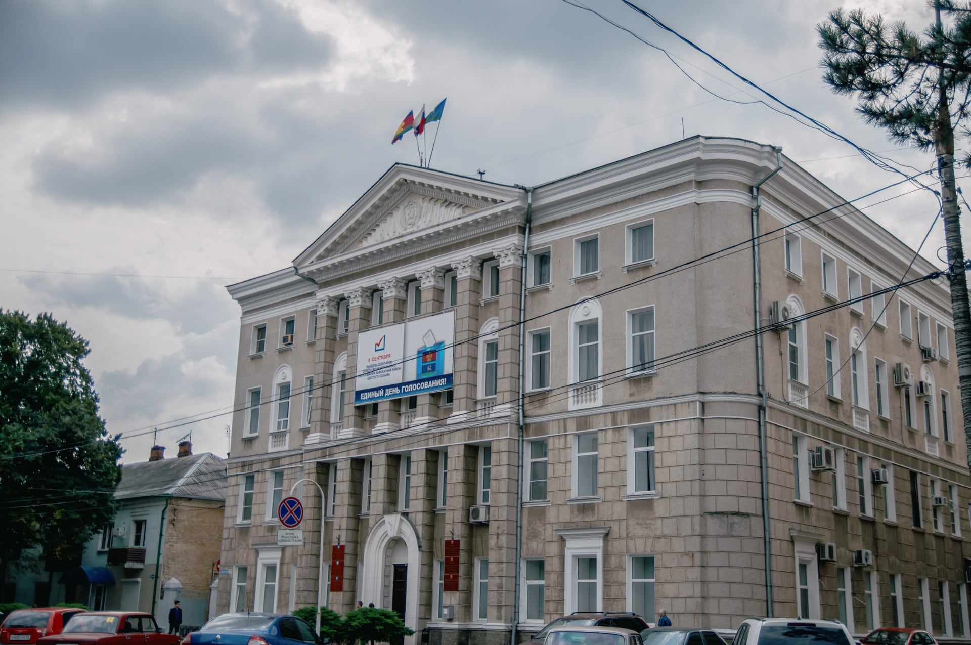 За площадью начинается один из лучших кварталов Кропоткина. В какой-то момент там может показаться, что находишься в городе раза в четыре большем, но никак не в простом районном центре. Здание администрации, исполненное в типичном, простите за тавтологию, административном советском стиле.