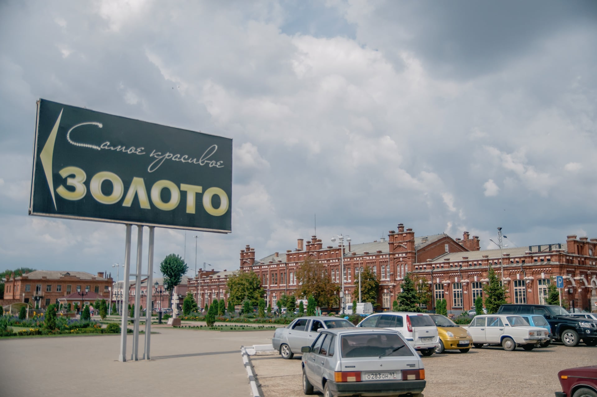 Кропоткин, всё-таки, небольшой. Чуть меньше часа ходьбы от края и вот мы на привокзальной площади — в cердце города. Площадь хороша, но сперва ложка дёгтя.