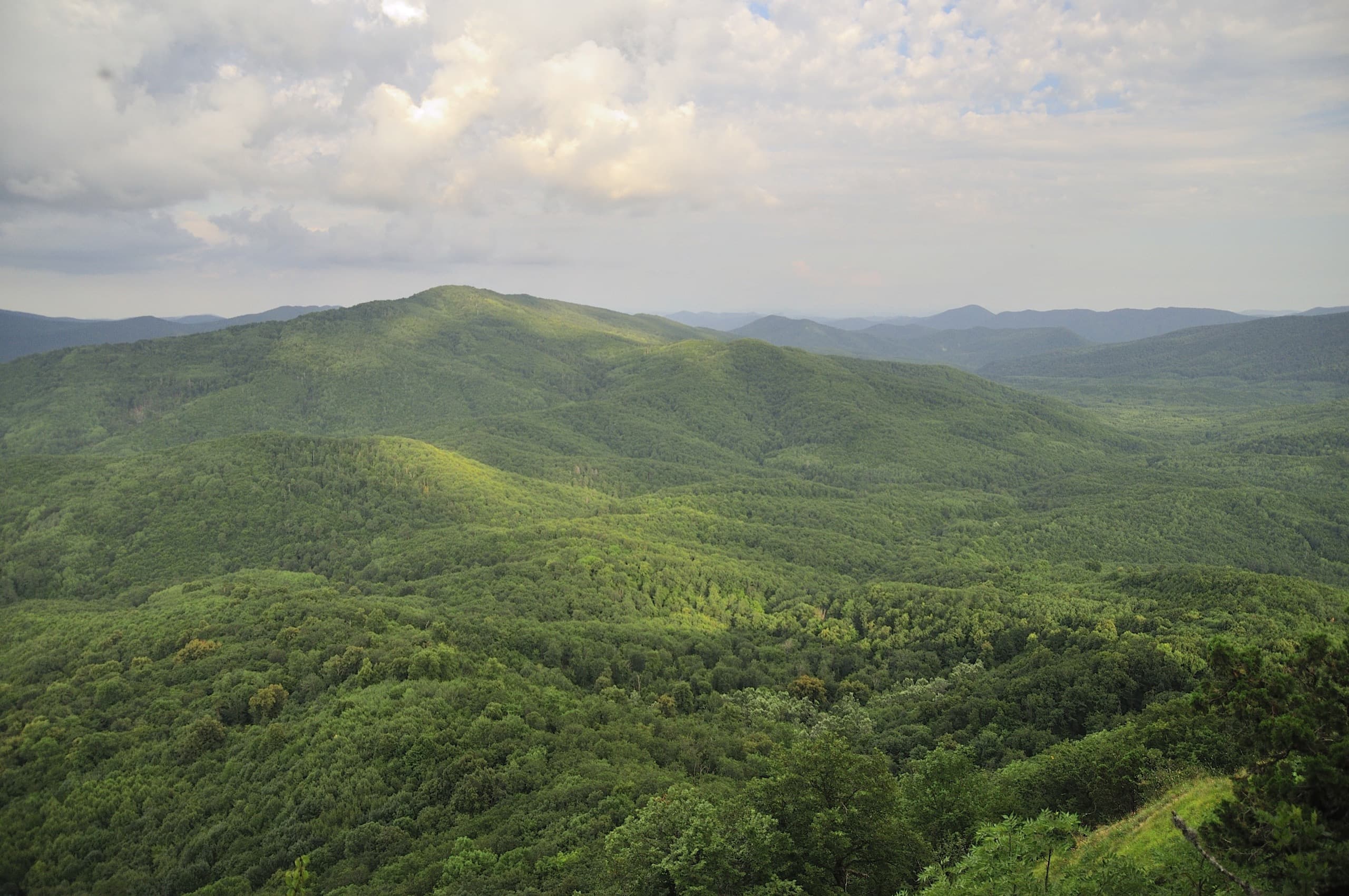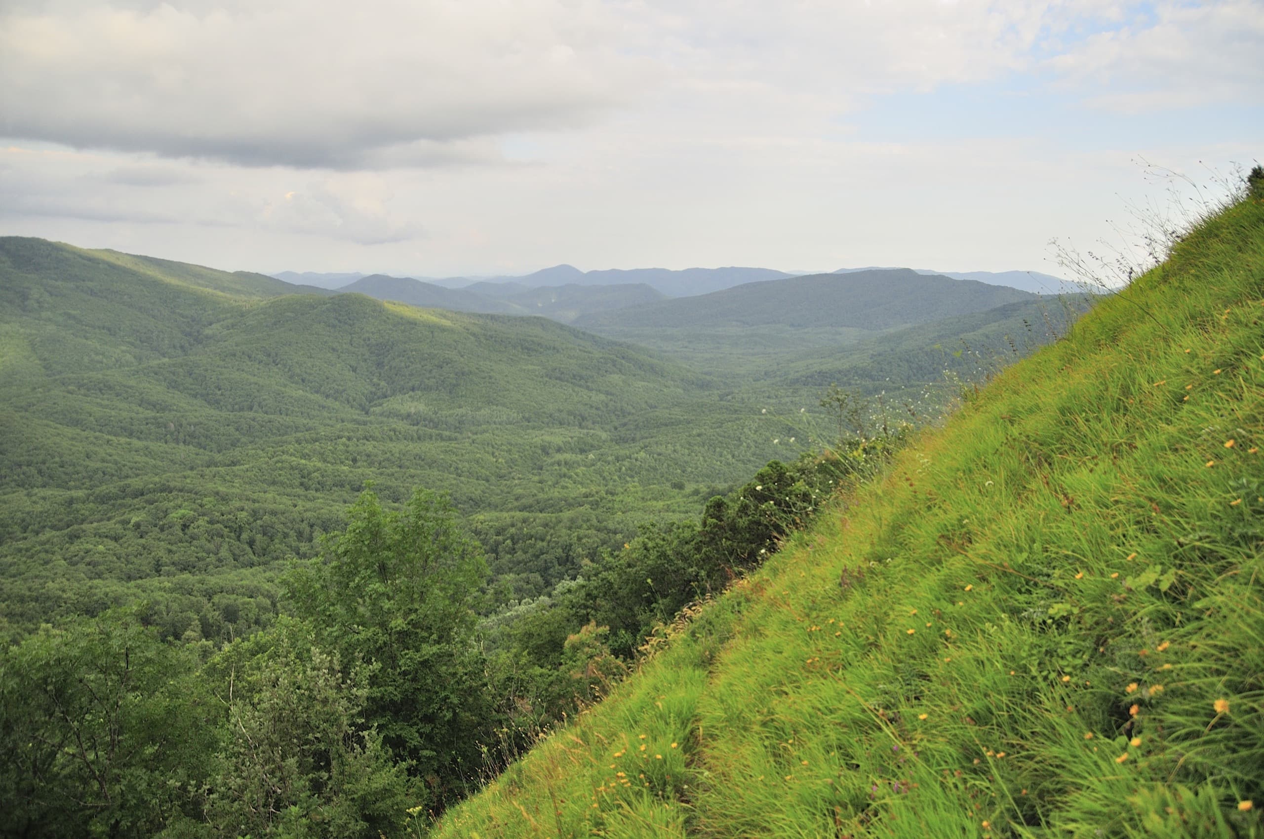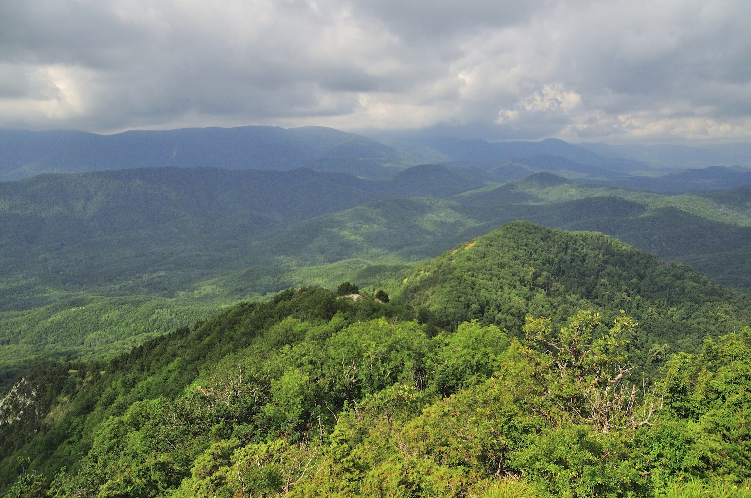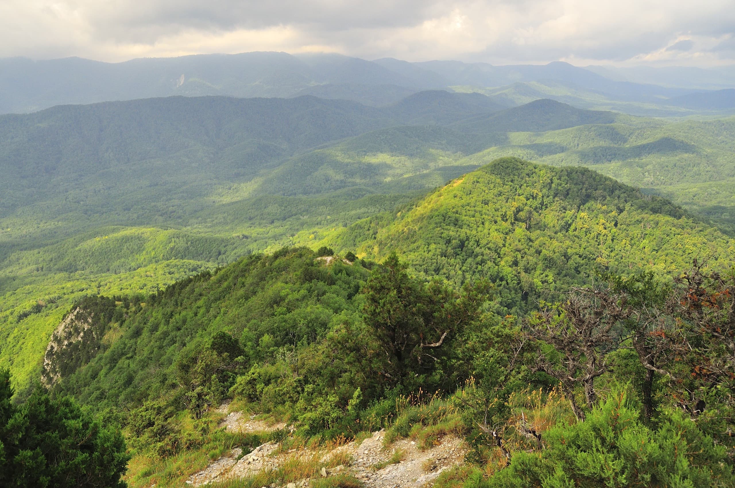 Пока поднимались по лесу, ничего не видели вокруг. Идёшь, а вокруг одни деревья: чувствуешь, что высоко забрался, а перед глазами стволы, да листья.