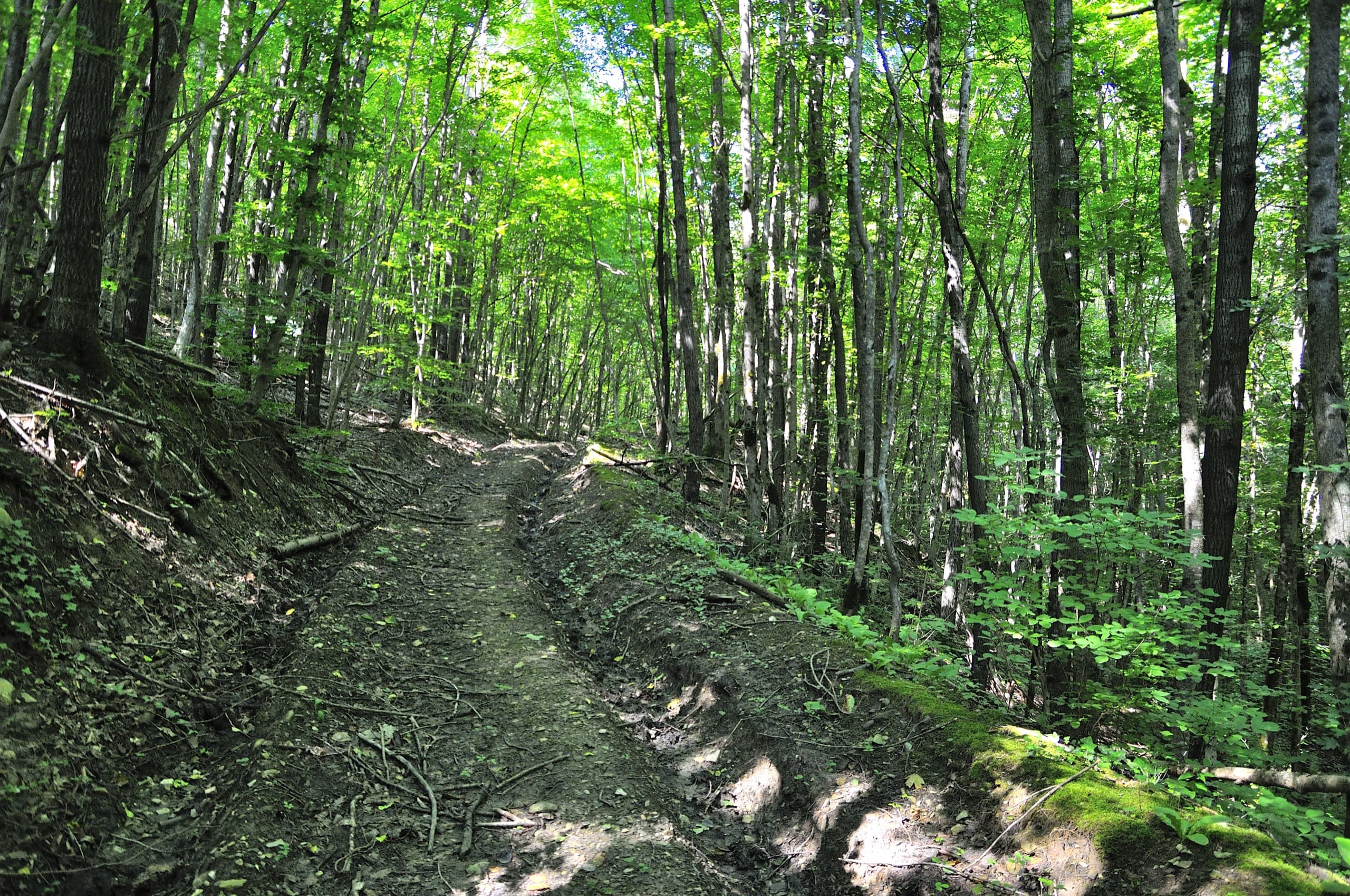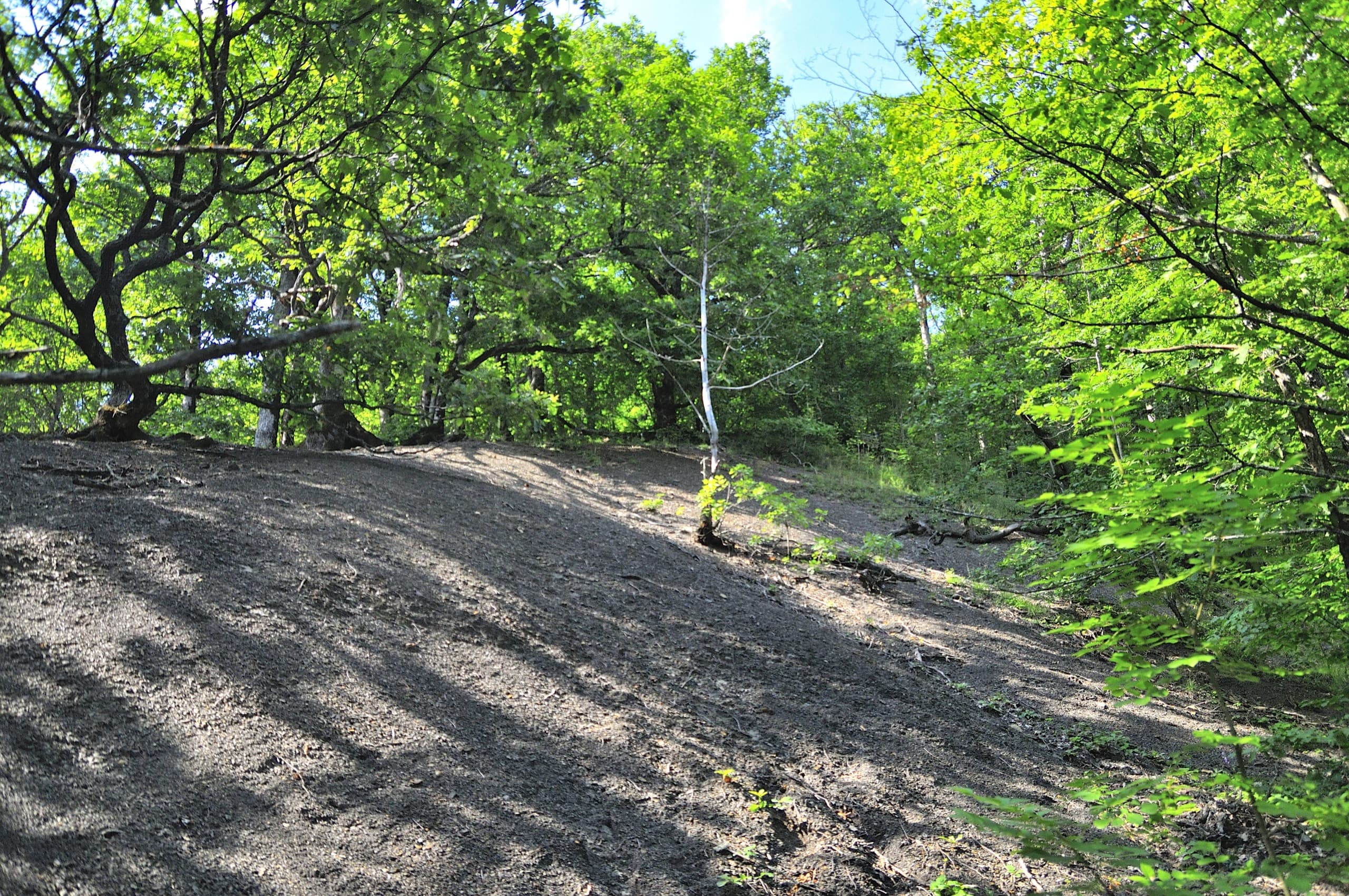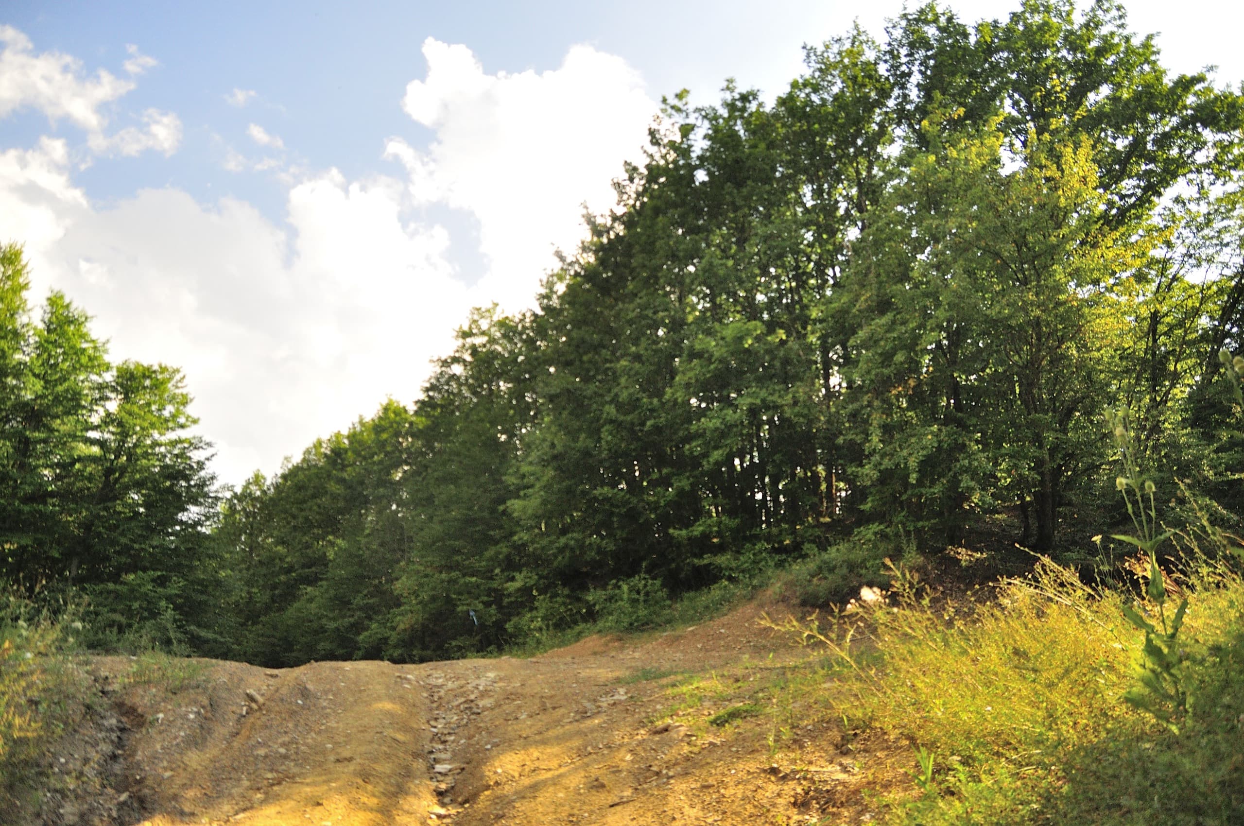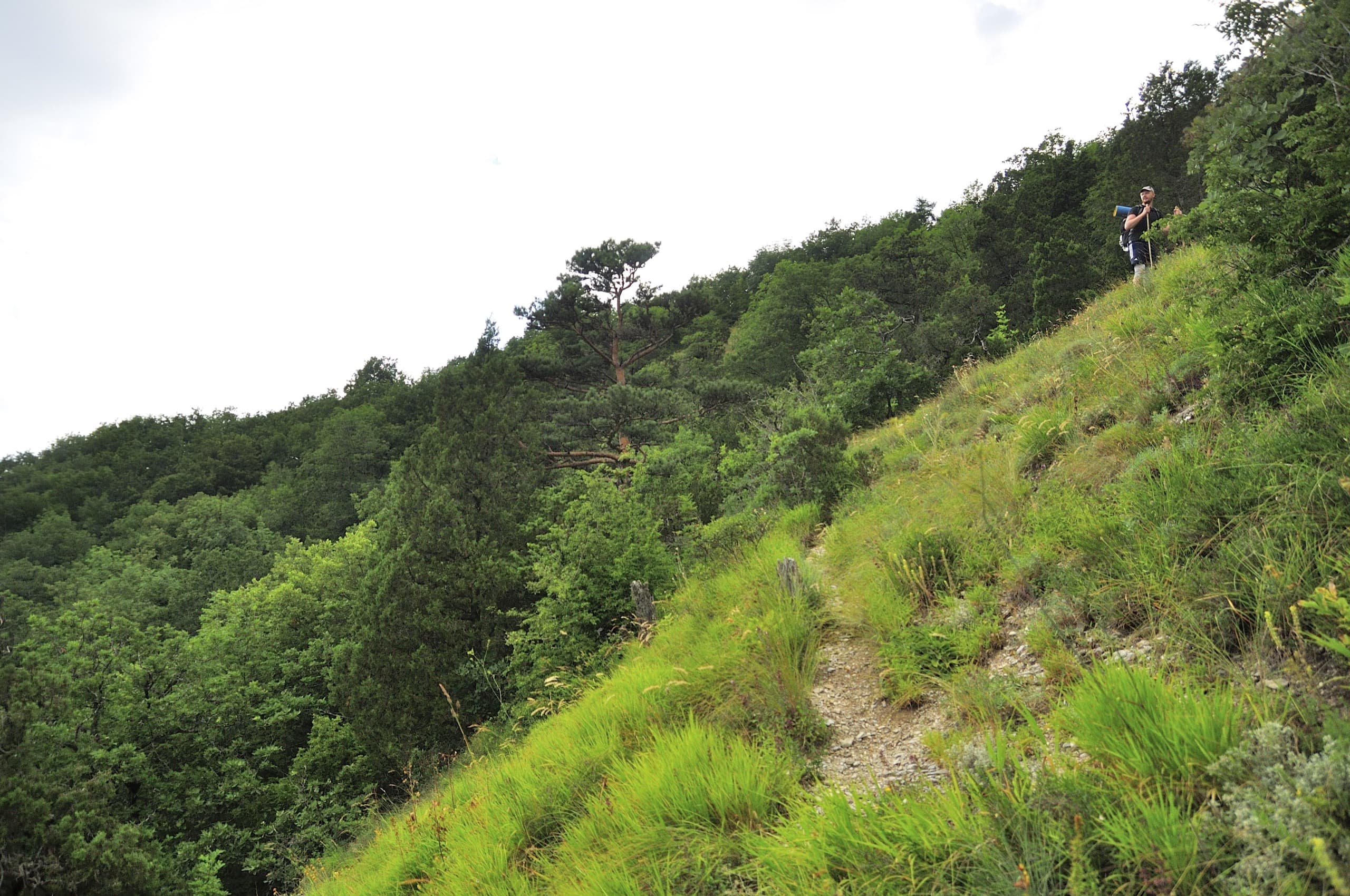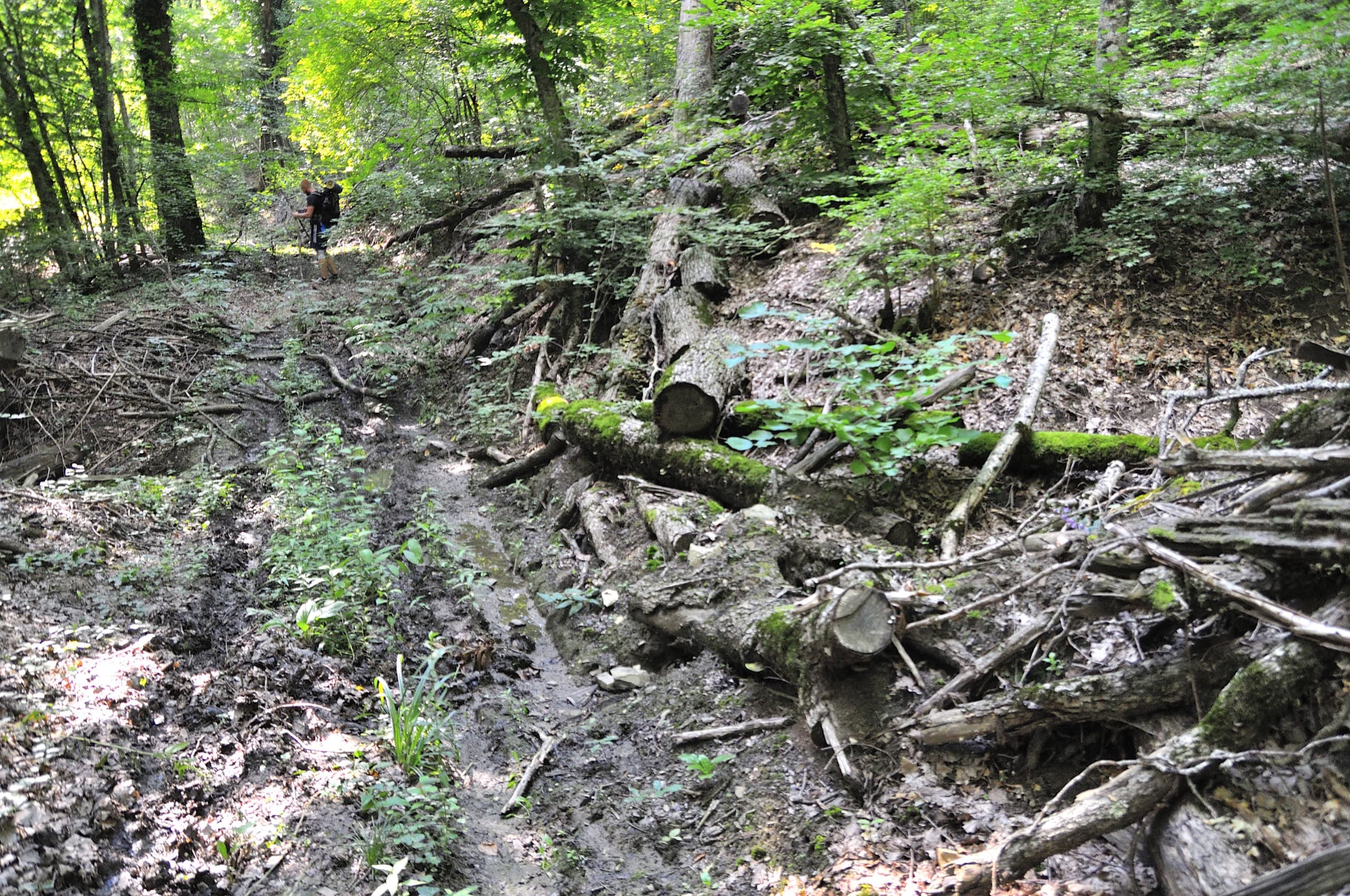 Нам нужно было пройти по лесной дороге, но она делает большой крюк, поэтому я решил проверить тропу, которая на карте проходит аккурат вдоль склона.