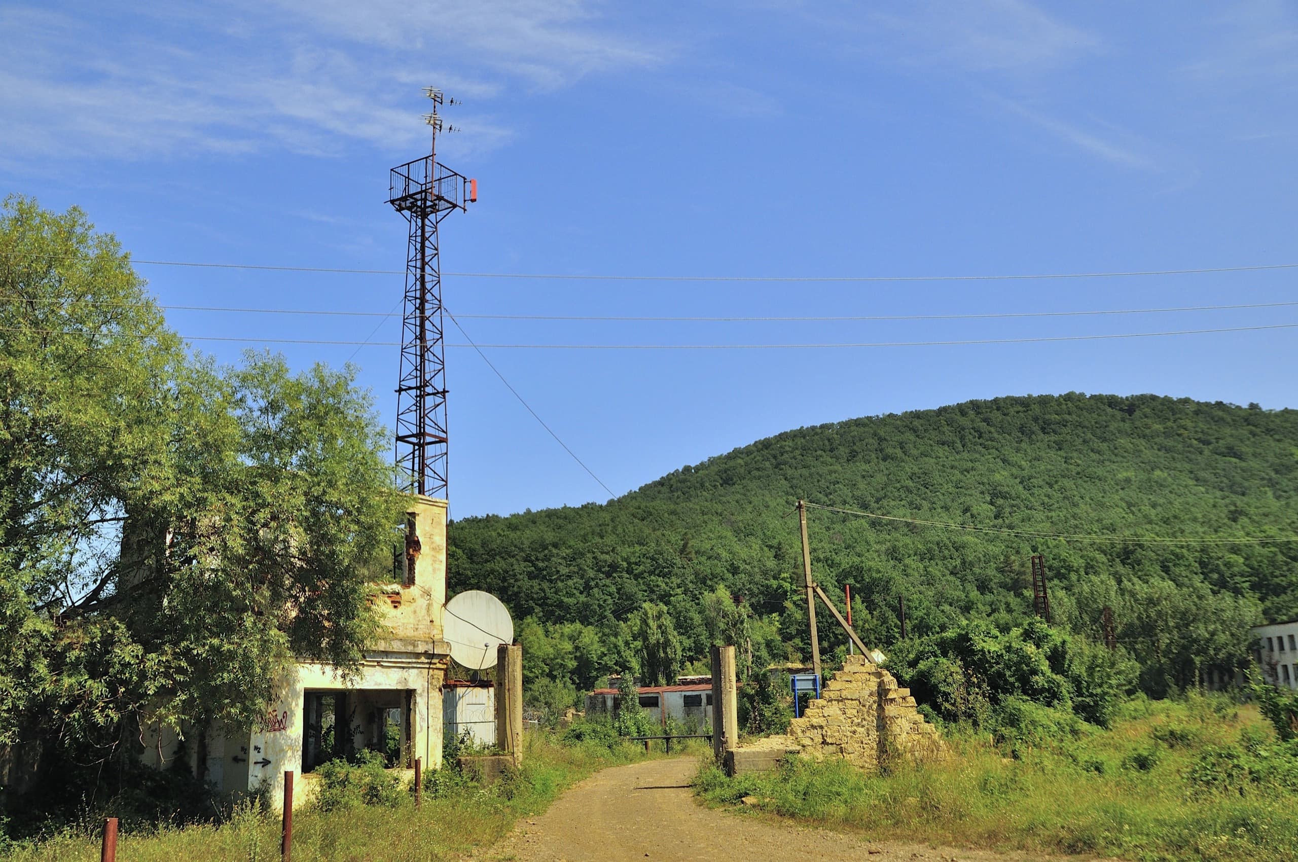 Грязь закончилась, дорога стала сухой и ровной, из-за деревьев выглянули линии электропередач. Провода с них сняли воры — цивилизация. Через двадцать минут заходим в Новый. Посёлок обитаем. Много разрушенных зданий и территорий, но тем не менее среди них стоят жилые одно-двухэтажные дома, где-то даже многоквартирные. Особенность Нового в том что здесь стоит специализированная психиатрическая больница, она — градообразующее предприятие. В этом плане здешние места знатные — рядом с Новым есть заброшенное месторождение ртути, как упомянул выше, стоит действующая психбольница, некогда была зона, еще раньше лепрозорий, которого в посёлке сейчас нет, зато есть действующий лепрозорий в расположенном рядом Синегорске — милое местечко, одним словом.