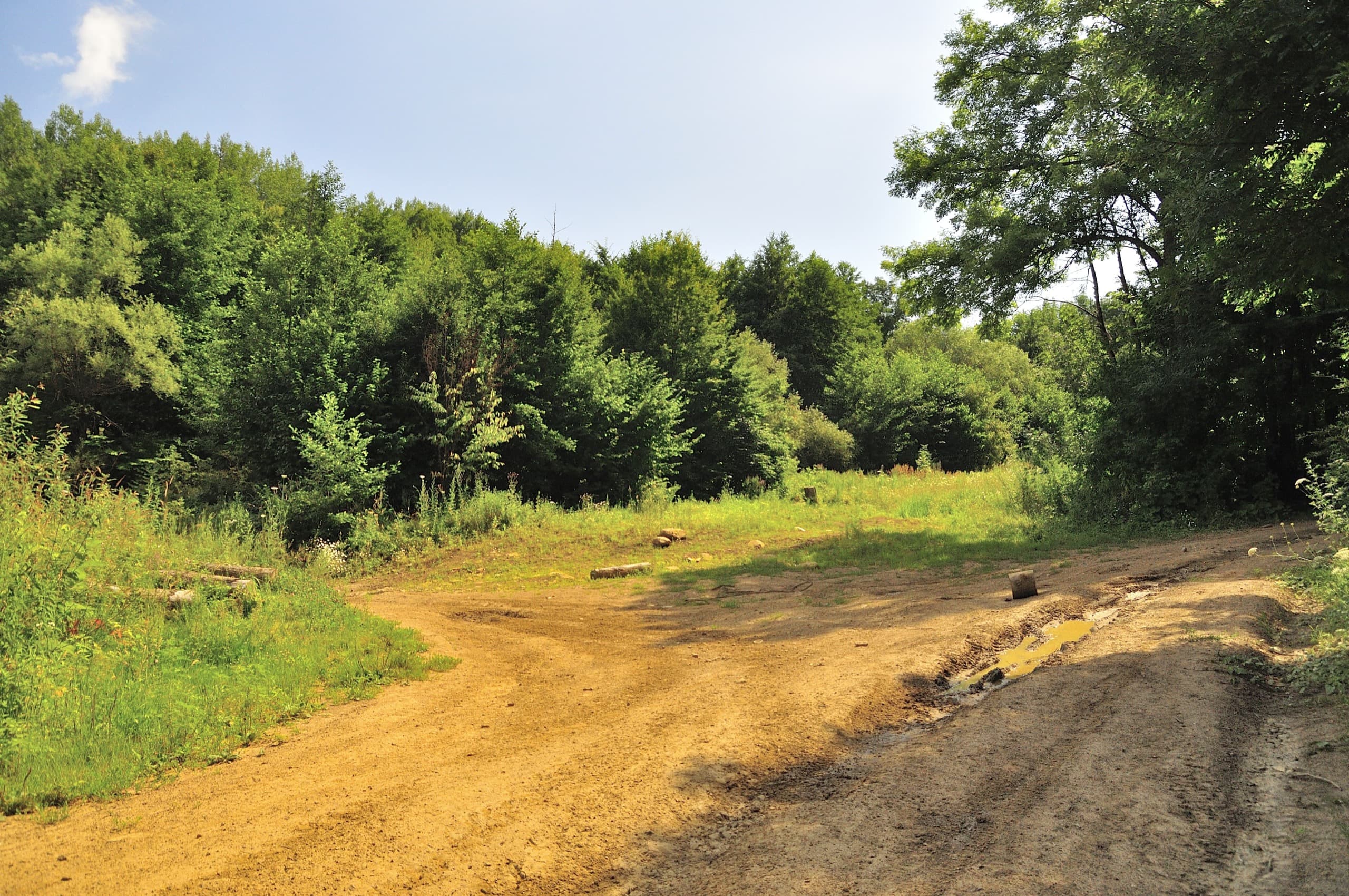 Идём дальше. Время близится к обеду, картина не меняется — лес, дорога, лес, дорога. Хотя нет, за «Дубравой» добавляется третий компонент — грязь. Как я говорил, до базы отдыха можно доехать на легковушке, а дальше идут одни лесовозы, да подготовленные внедорожники. Если в засушливую пору так грязно, то я не представляю, что будет твориться по осени.