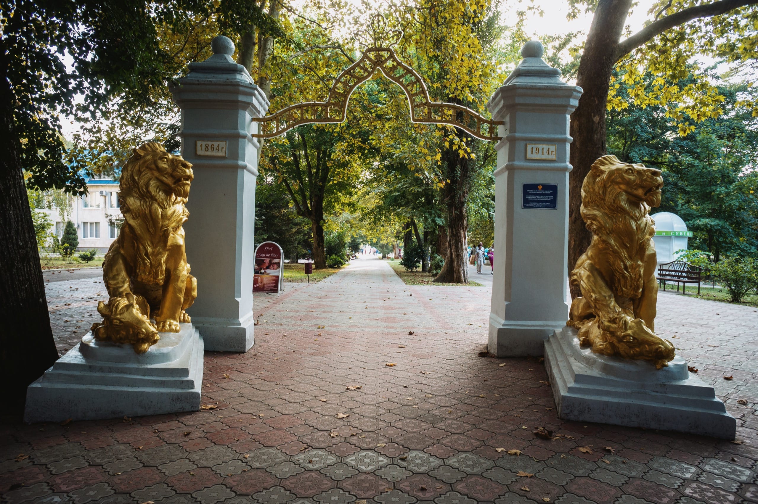 Львы по обеим сторонам от самой старой из юбилейных арок.