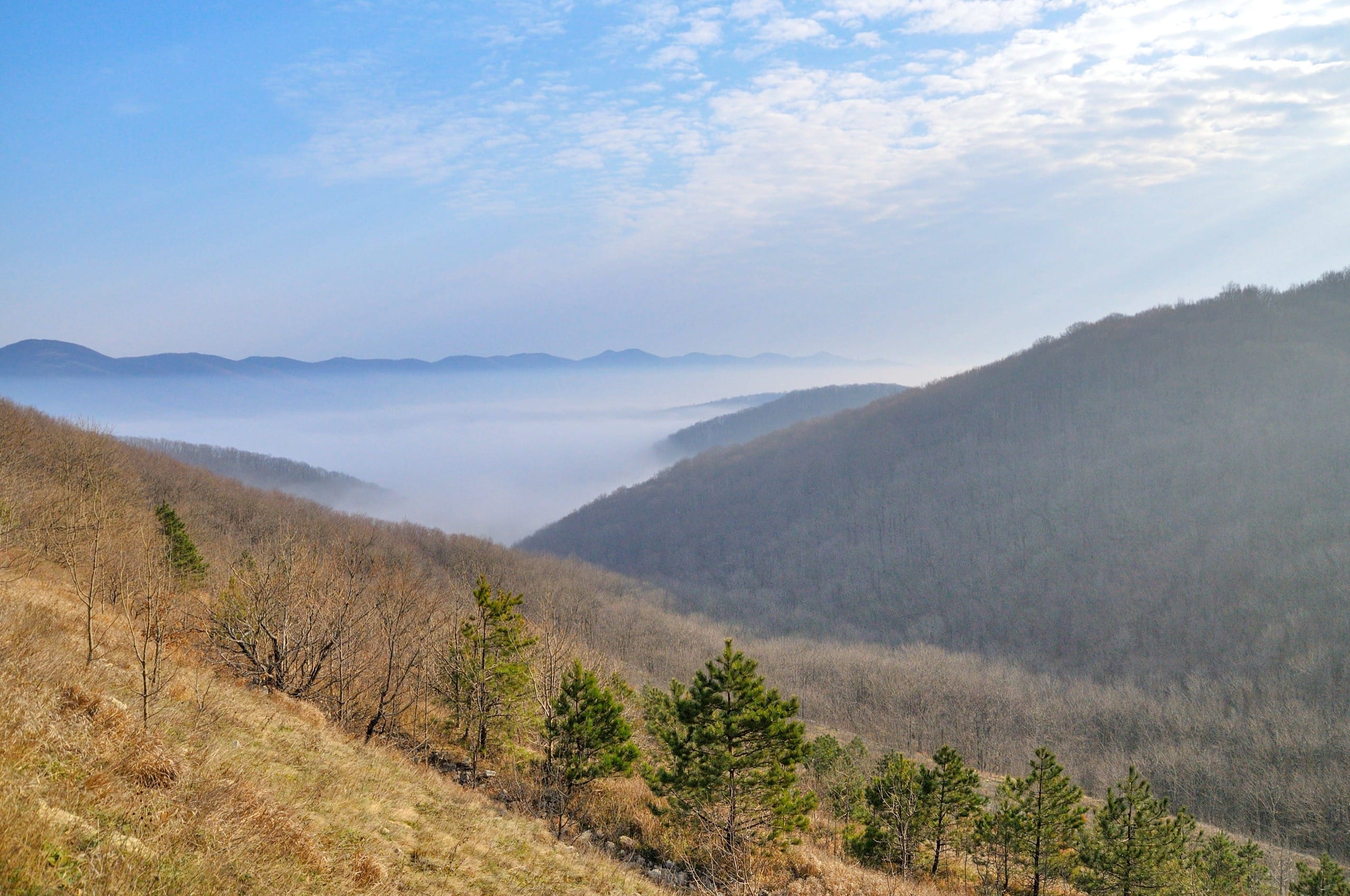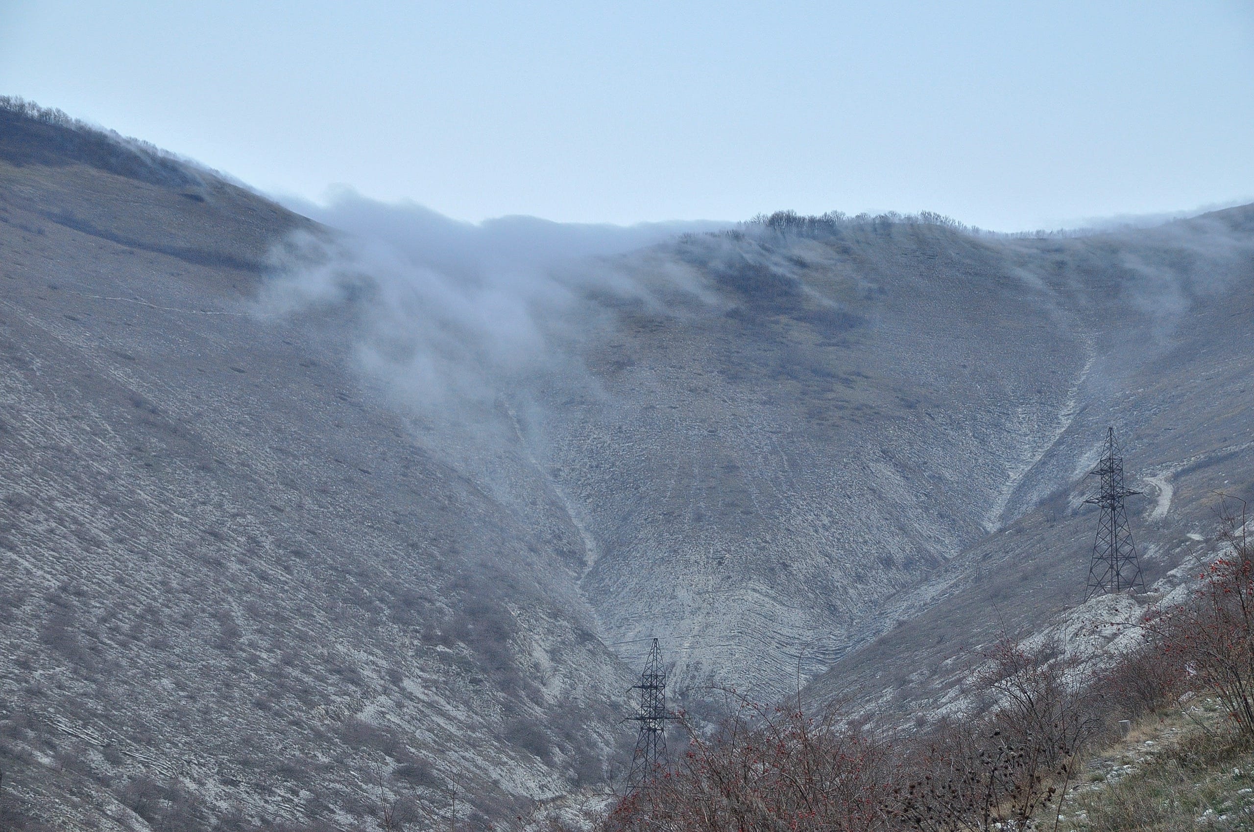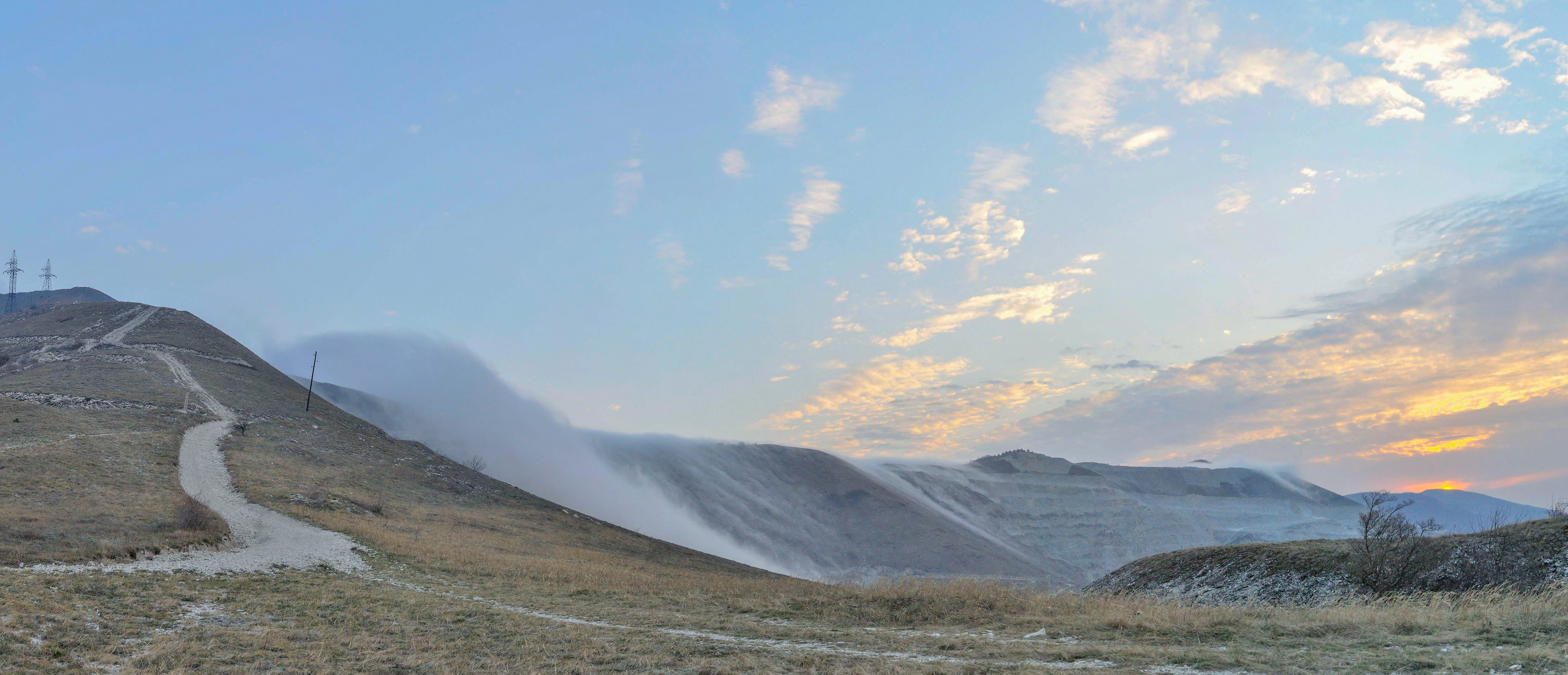 Фото 3. Туман струится вниз по склонам.