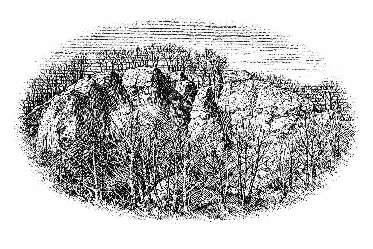Вид со скал открывается неплохой. Махровым ковром перед глазами раскинулись местные холмистые горы, зимой этот ковёр грязно коричневый, с редкими белесыми прожилками снега или тёмно-зелёными хвойными вкраплениями. Подальше подымаются сначала гора Чистая, высотой в 534 метра, рядом с ней торчит 557-я, где-то за ними вьётся трасса «Дон», за которой уже стоят великаны (по местным меркам) — Чубатая (731 м), Щётка (776 м), Хребтовая (649 м).