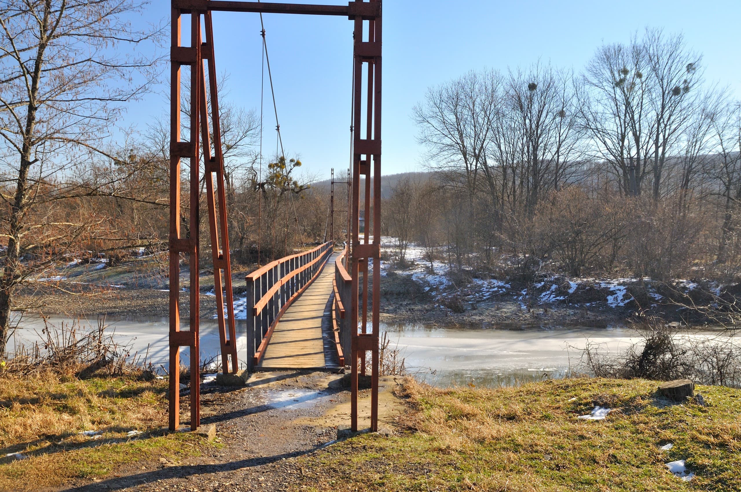 Есть длинный, совсем простой путь в обход, по дороге, но мы срезали: перешли Шебш по пешеходному мосту, вышли на улицу Заречную, которая вскоре превратилась в тропу. Выбранная дорожка переваливает через небольшое повышение на правом берегу реки, набор высоты ерундовый, всего сотня метров, а маршрут сокращается почти на два километра.