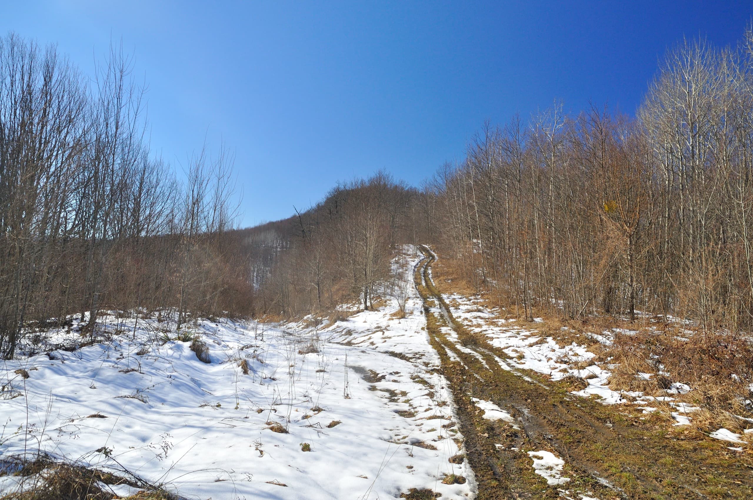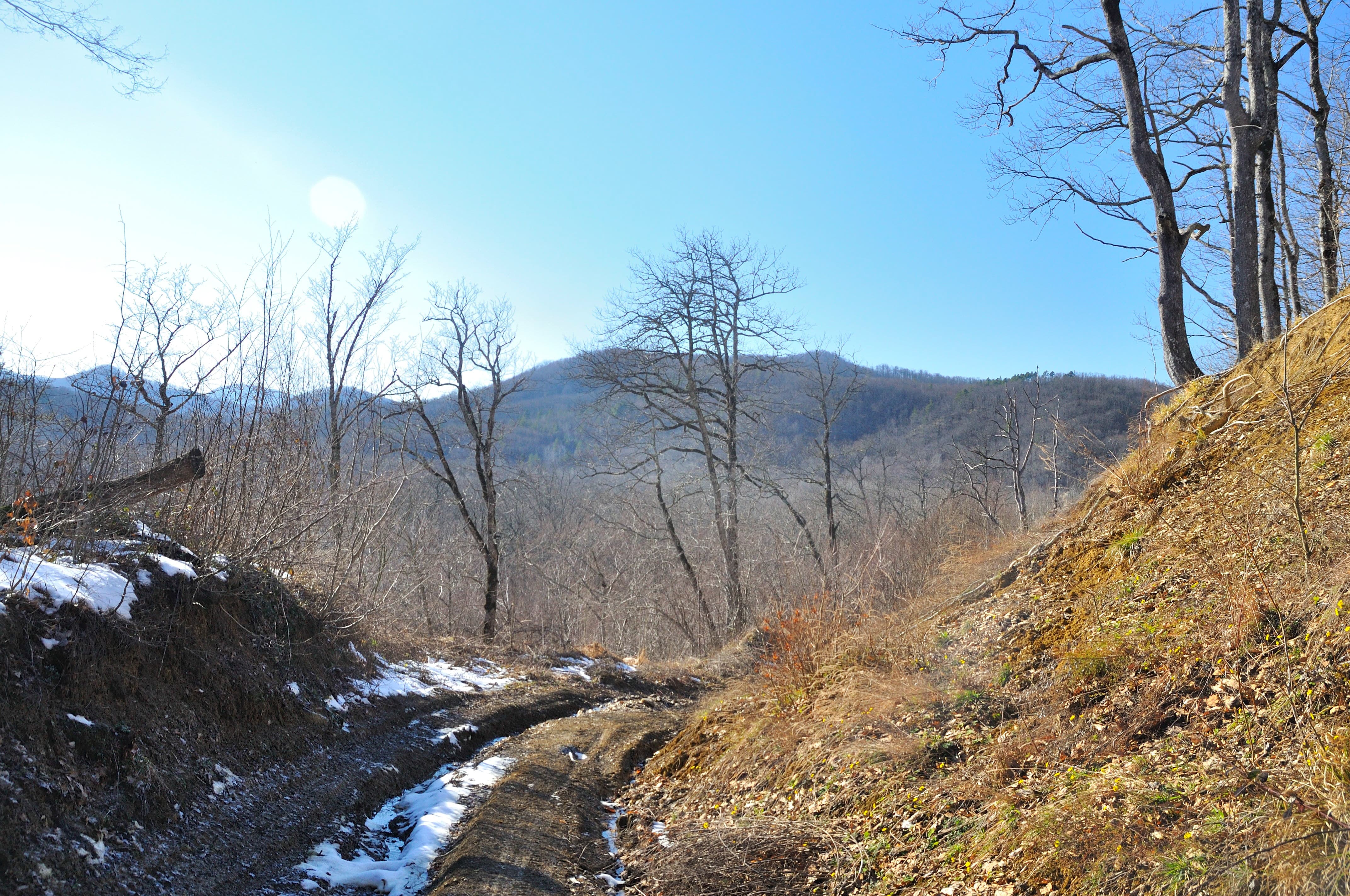 С утра морозно, но солнце набирает силу, под ногами снег, однако, с каждой минутой становится всё теплее и понимаешь, что лежать ему недолго остаётся. Если на северном склоне снег покрывает землю плотным ковром, то стоило перевалить через гребень, как от него остались лишь раскиданные по лесу белые пятна.