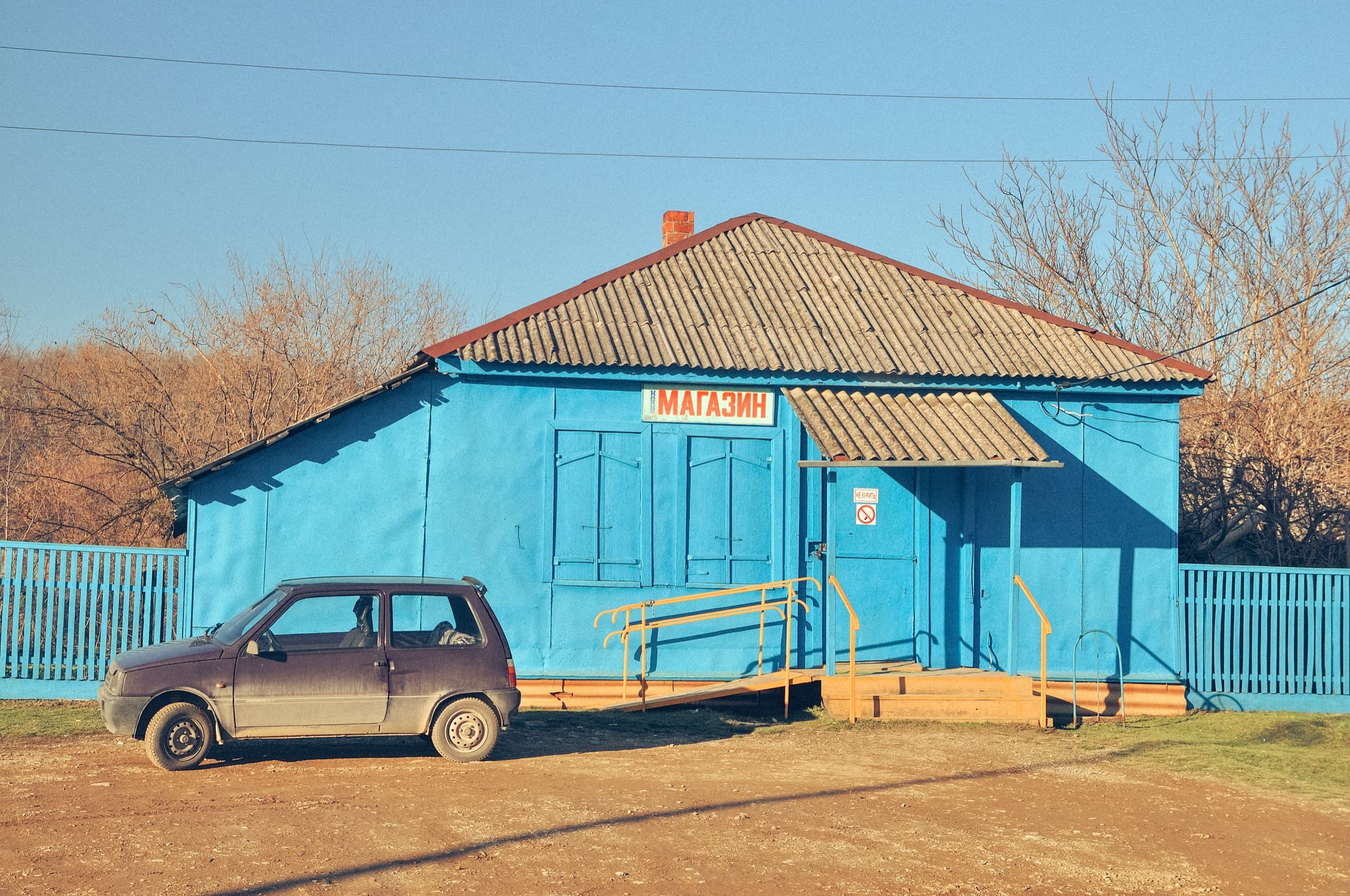 В Шабановском нашёлся один из самых милых магазинов, которые мне встречались. Аккуратно выкрашенный синей краской, с рыжим цоколем и жёлтыми перилами, с деревянными окошками и распашными ставенками. Никаких ролл-ставен и прочей ерунды. Возле этого магазина мы оставили машину и отправились к Монастырям.