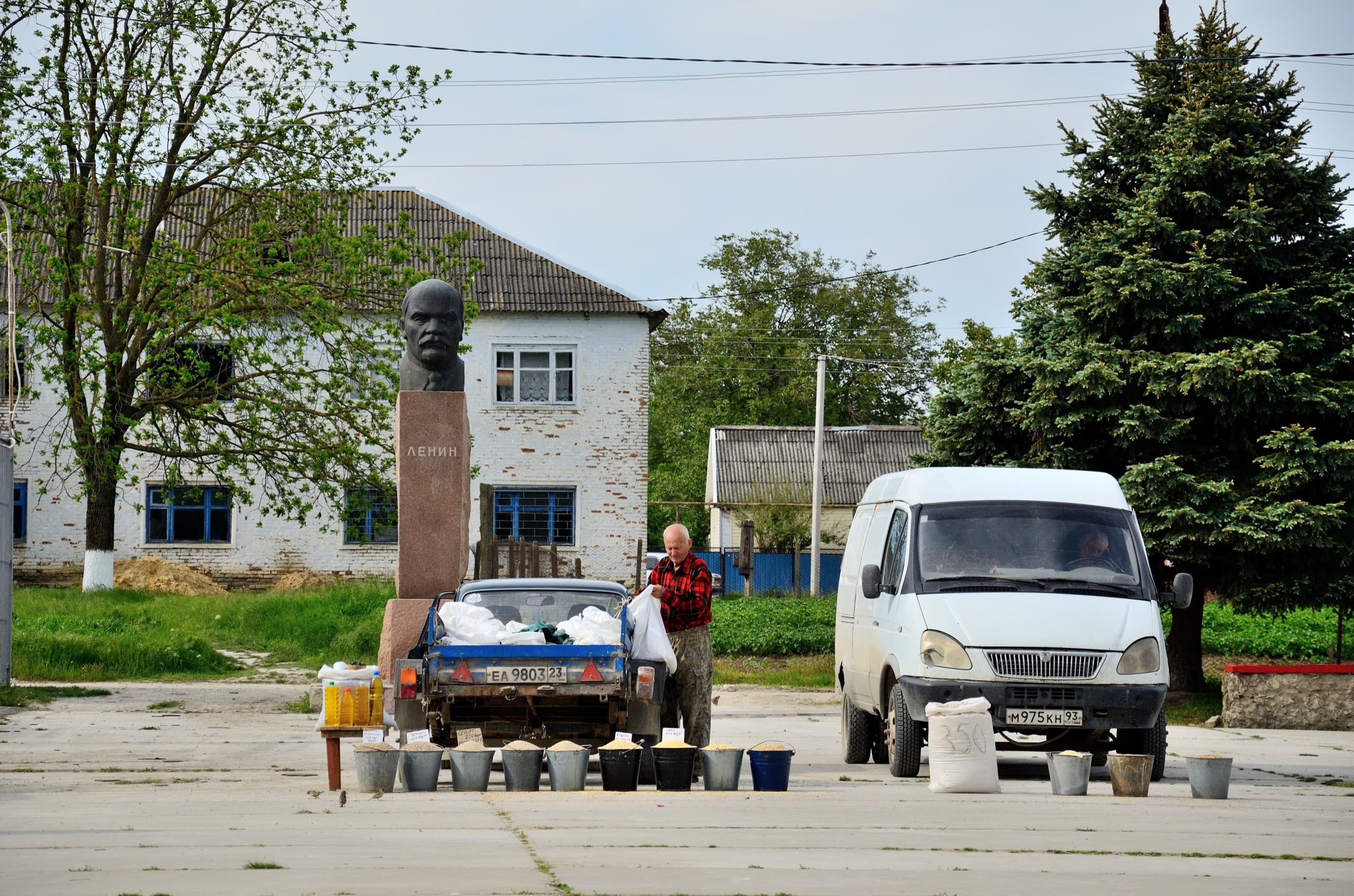 В центре есть площадь с Ильичем, на площади торгуют комбикормом и прочими сельскими прелестями.