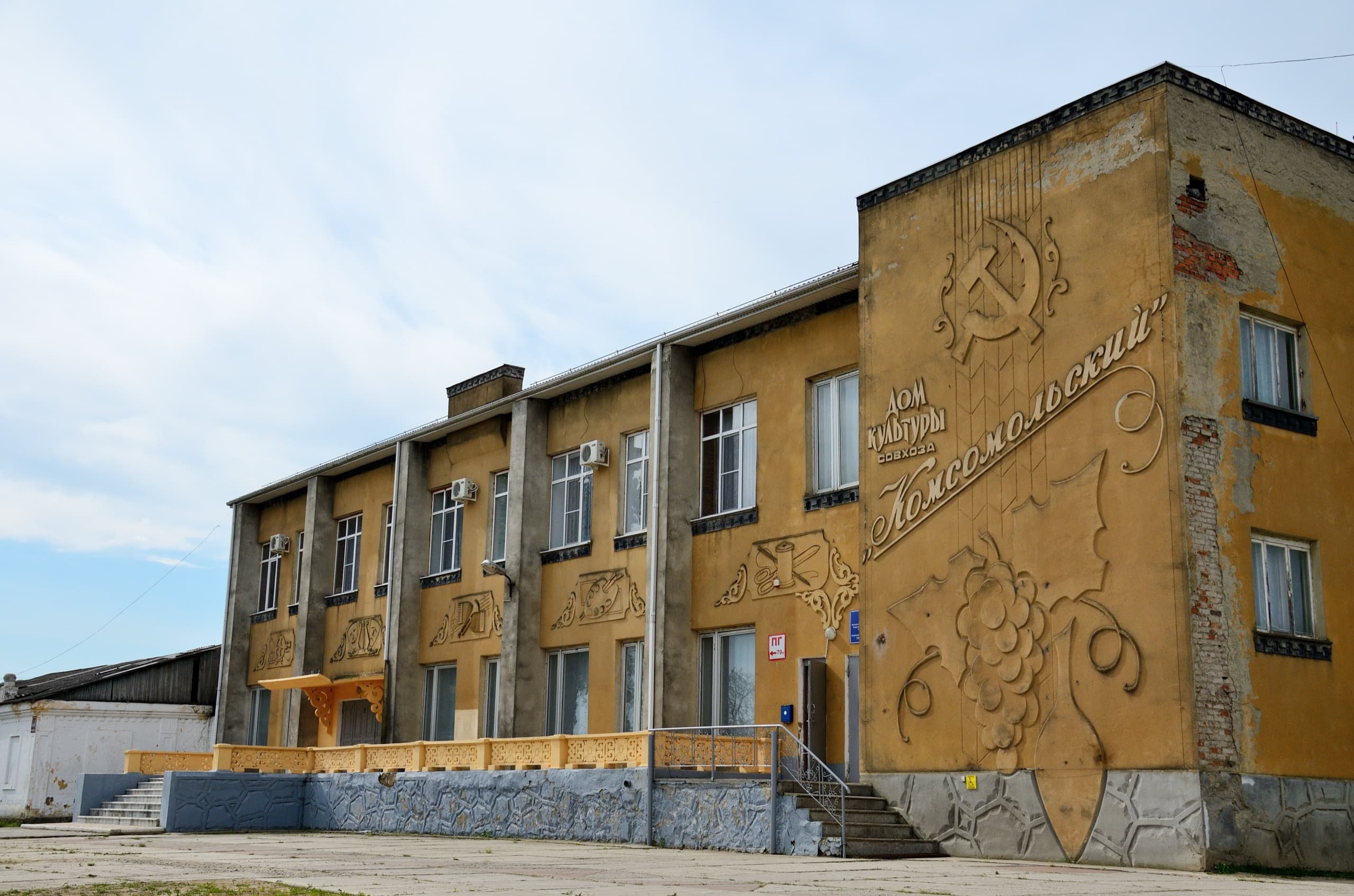 Больше в Курчанской ничего интересного нет. Буквально несколько минут езды отделяют станицу от районного центра — Темрюка. Город этот я решил выделить в отдельный очерк, который можно прочитать в чётвертой части рассказа. А здесь только покажу невероятной красоты здание дома культуры совхоза Комсомольского, ныне коньячного завода.