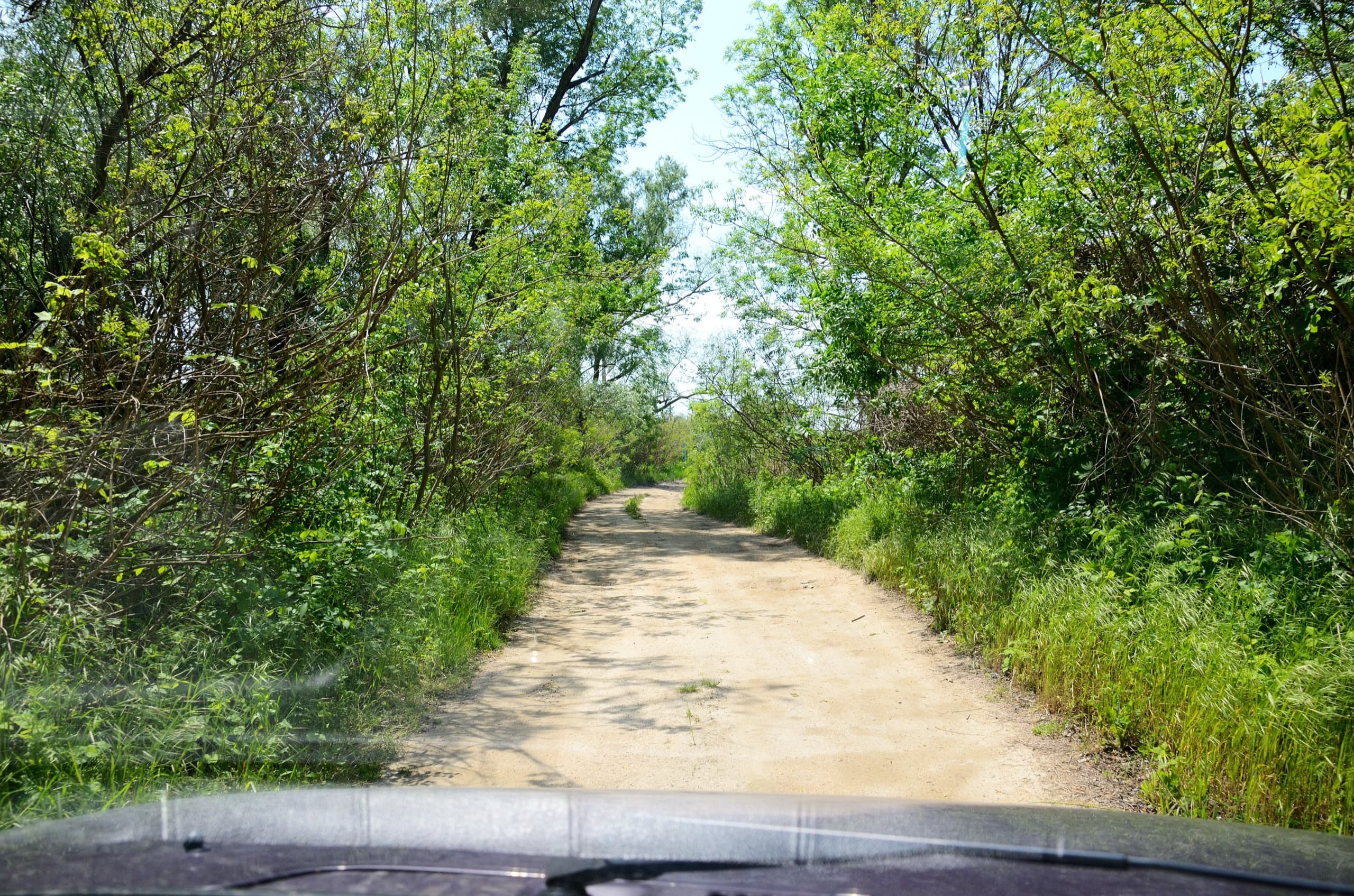 К устью мы ехали на ощупь, то есть по карте ОСМ. Там, где на карте, основная дорога уходила вправо свернули на затерянный просёлок и поехали куда глаза глядят по невероятно ухабистой дорожке.