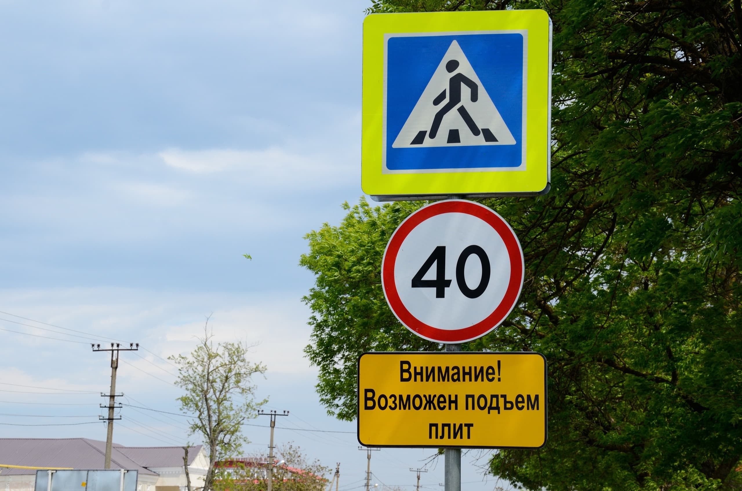 В Пересыпи впервые встречаю необычные дорожные знаки, позже они встретятся ещё в ряде мест. Возможен подъём плит — и это не шутки. Совсем недавно в одно мгновение без всяких землетрясений обнажилось несколько десятков метров морского дна в районе посёлка Приазовского. Вот так.