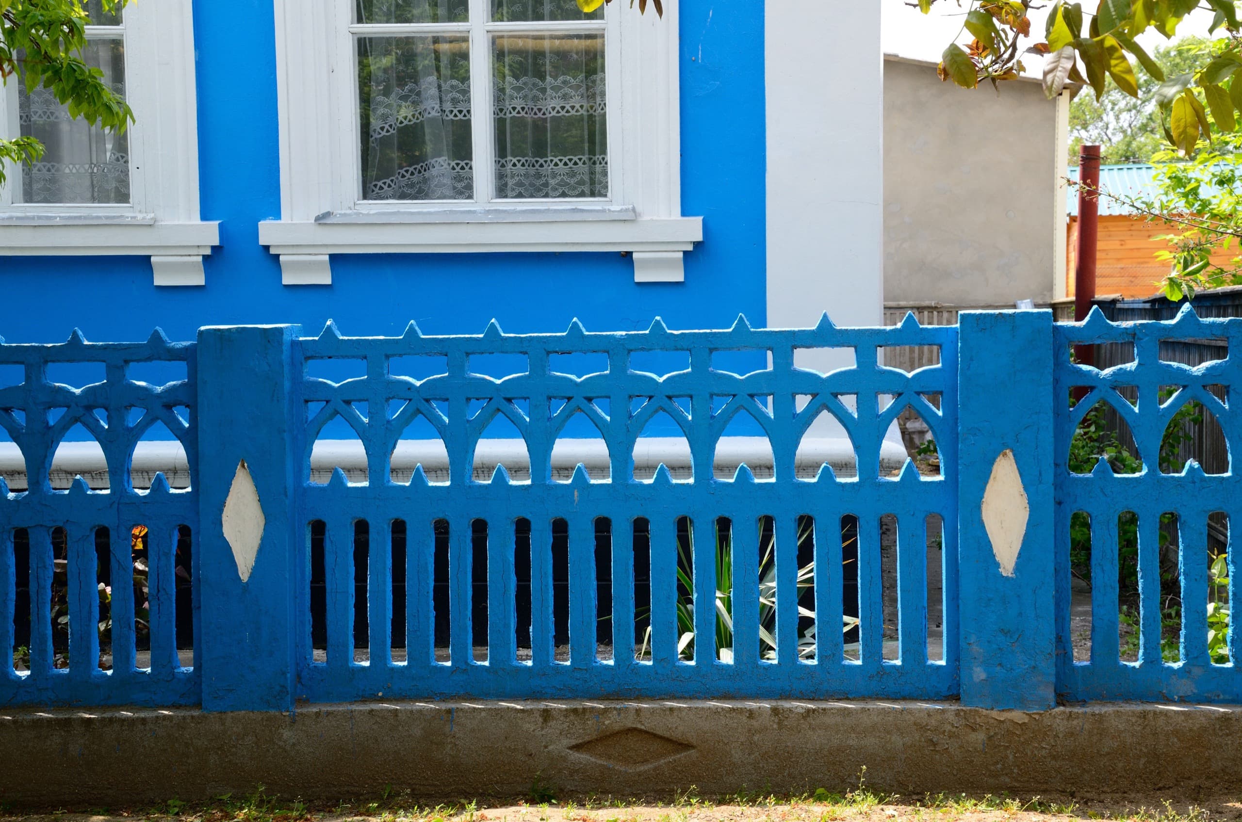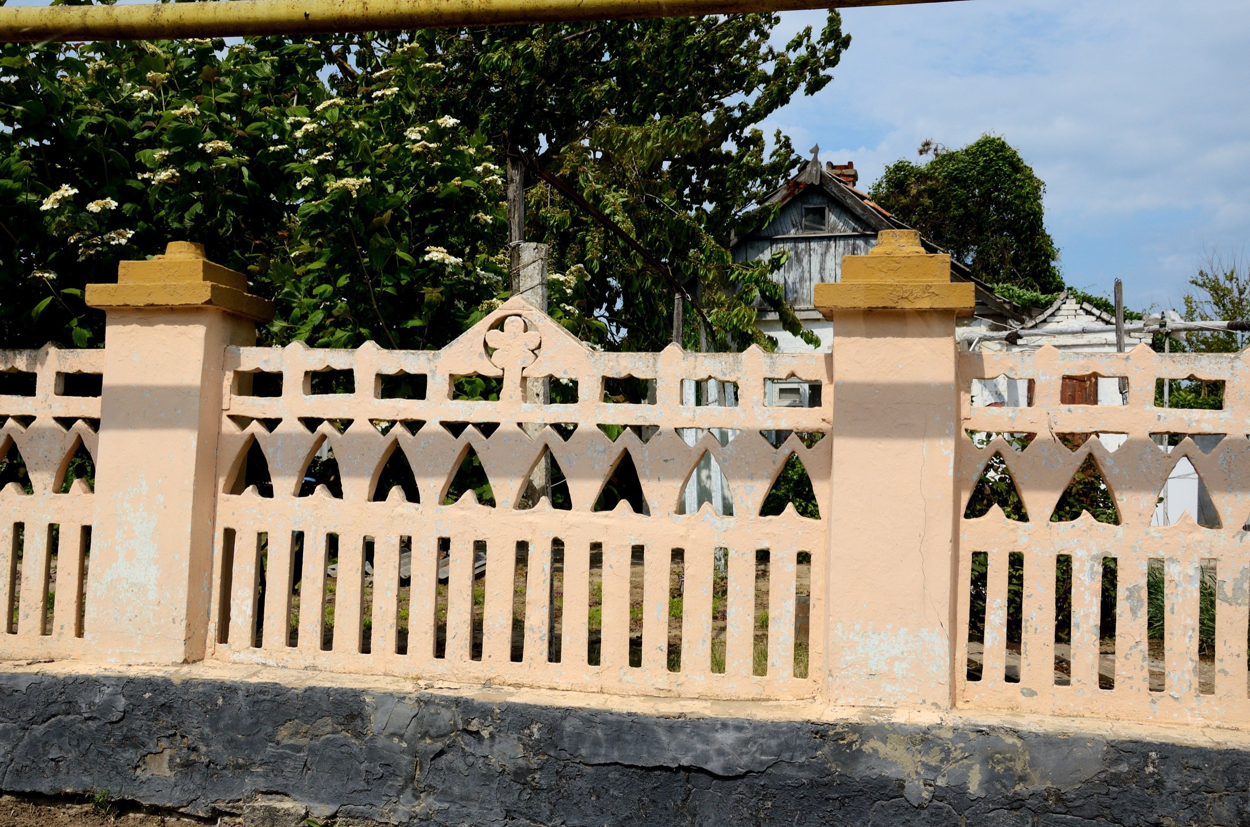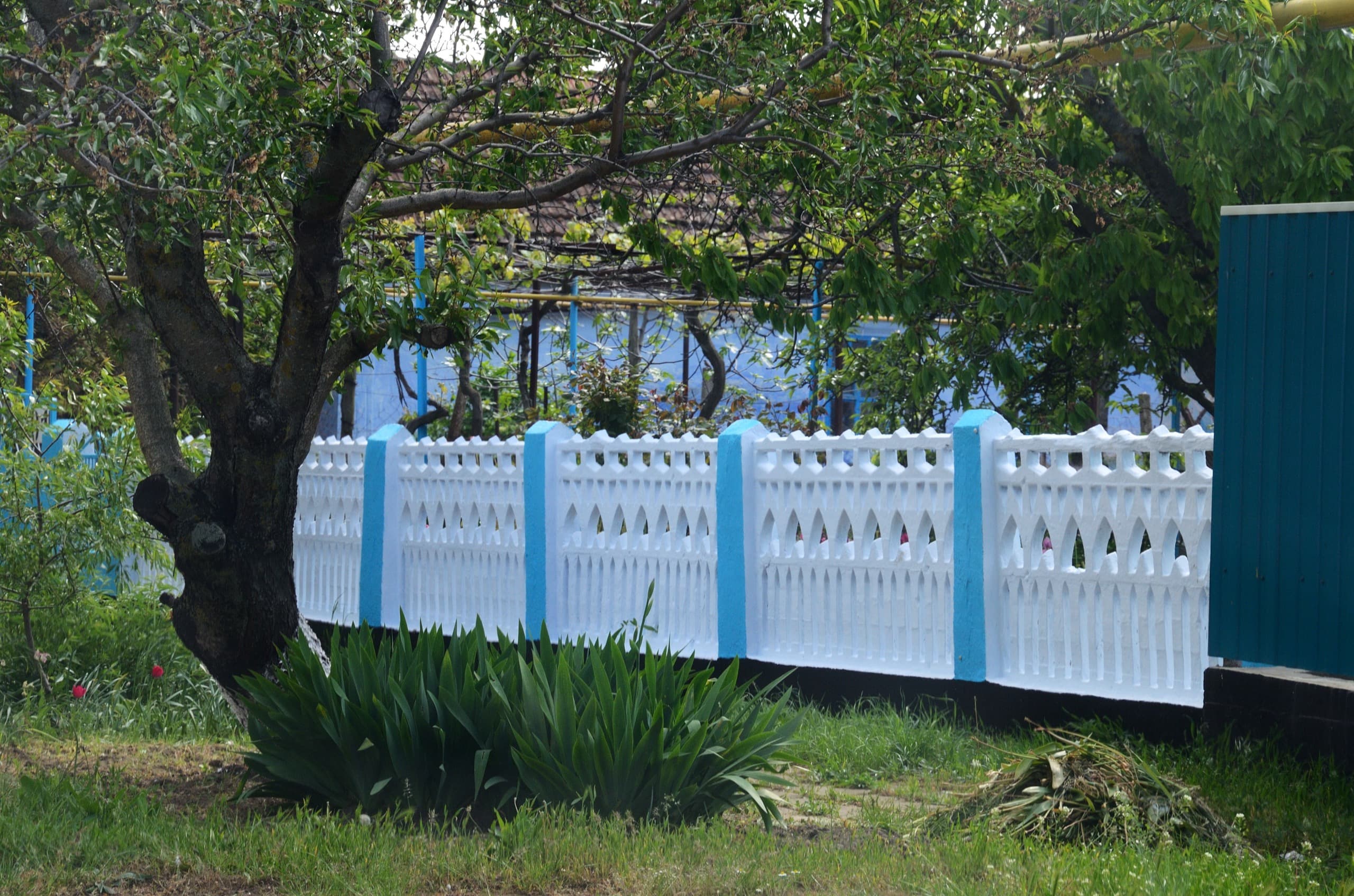 Забор в посёлке За Родину. Первый в этом посте, но далеко не последний. Ещё во время поездки в Тамань я приметил обилие бетонных «дышащих» заборов, причудливых форм и узоров. Экспедиция подтвердила, что такие встречаются на Тамани повсеместно. И это круто. Забор должен быть таким — низким, прозрачным и красивым, а не глухим, высоким и из профнастила — привет, Краснодар.