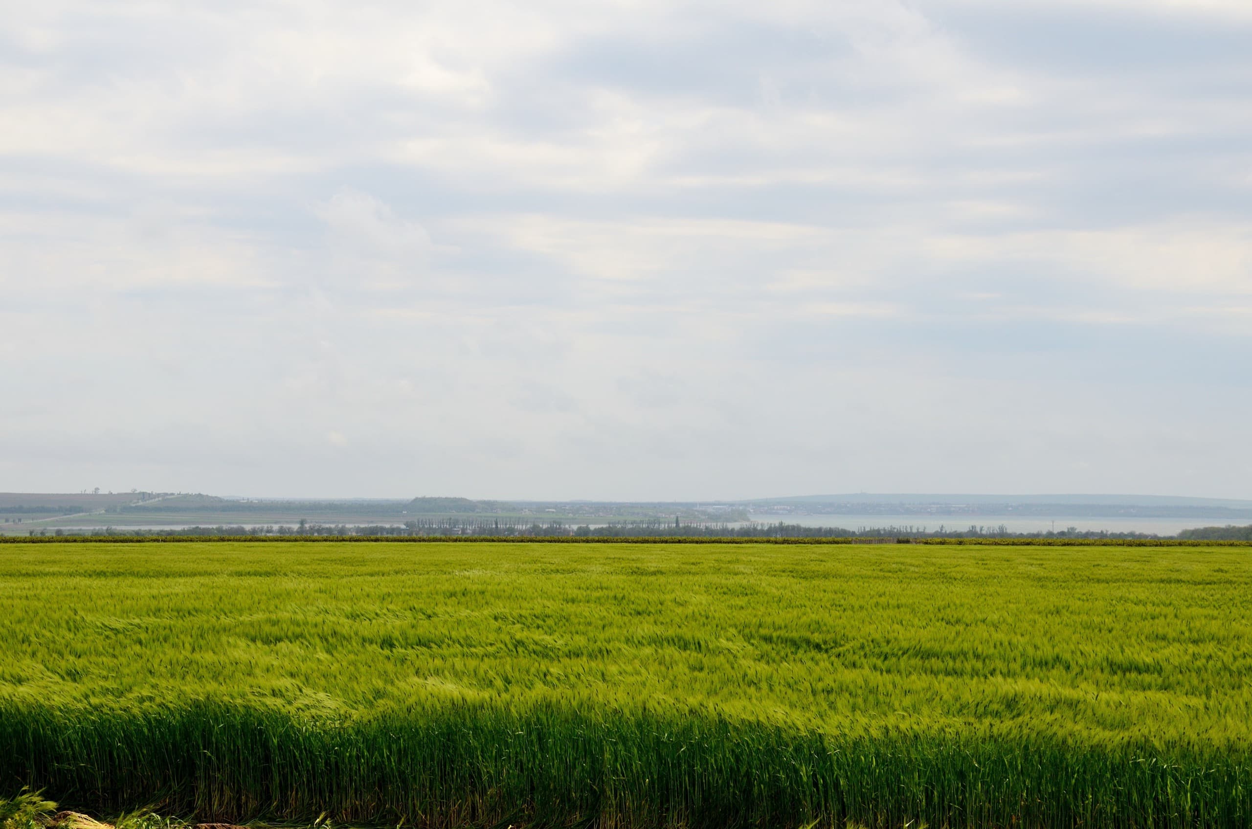 Ещё один пейзаж. Мы держим путь в посёлок Кучугуры, я не выдерживаю и останавливаюсь полюбоваться и сфотографировать. На улице сильнейший ветер и картина вызывает недоумение, что же перед тобой: поле или море? Трава бушует, струится, переливается под порывами. Красота.