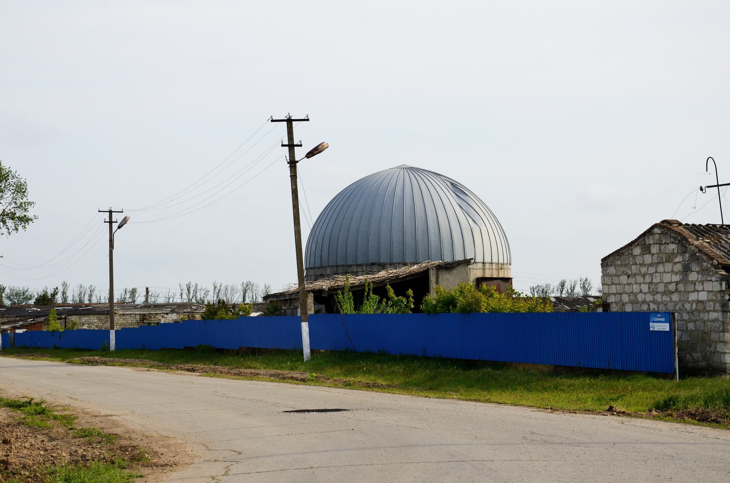 На въезде в Юбилейный нас встречает хоз. постройка неизвестного назначения, напоминающая внешним видом то ли мечеть, то ли обсерваторию.