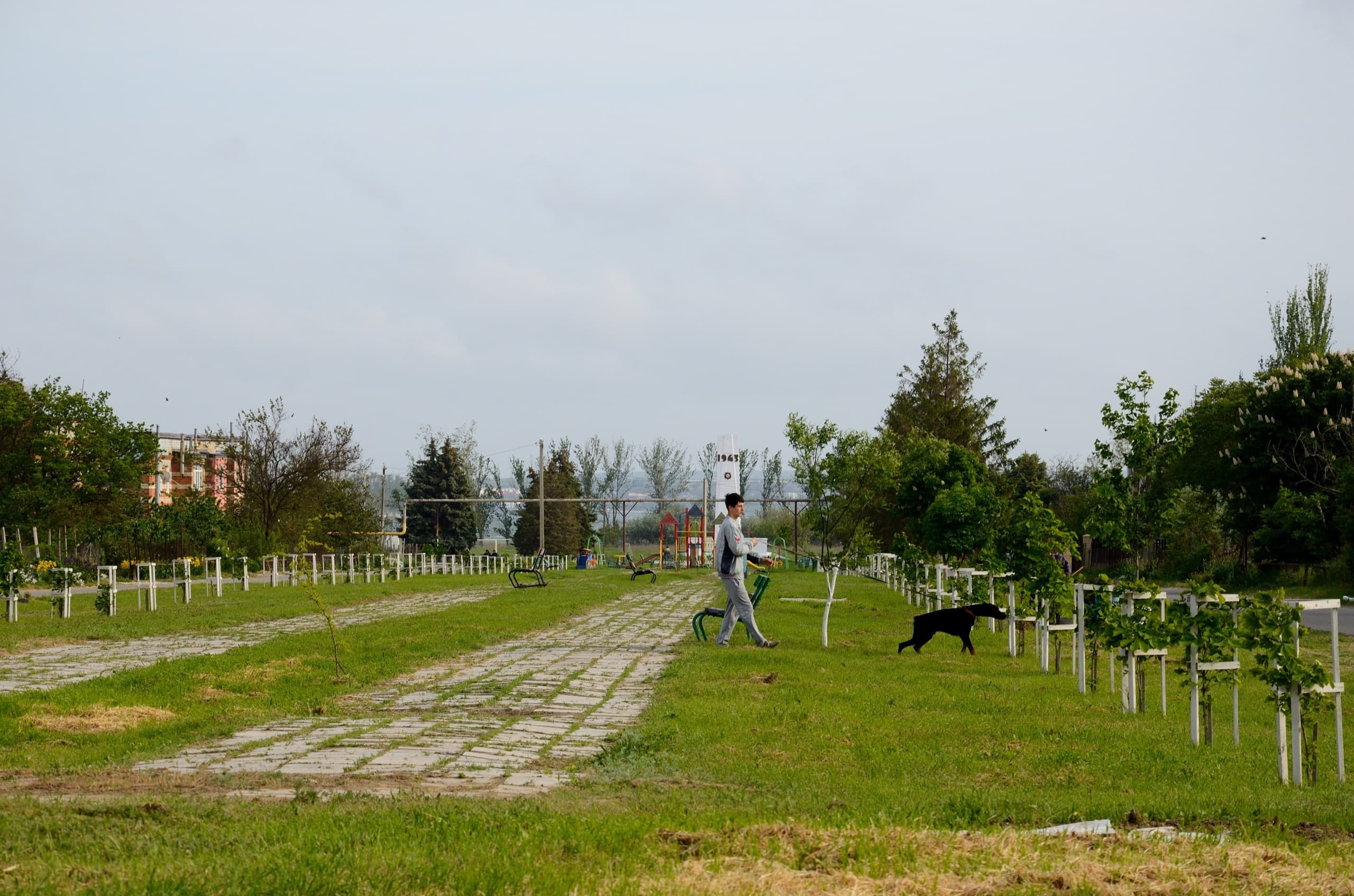 В Юбилейном заложена широкая аллея. Когда саженцы подрастут, а коммунальщики почистят траву меж плиток, то место может стать очень даже уютным.