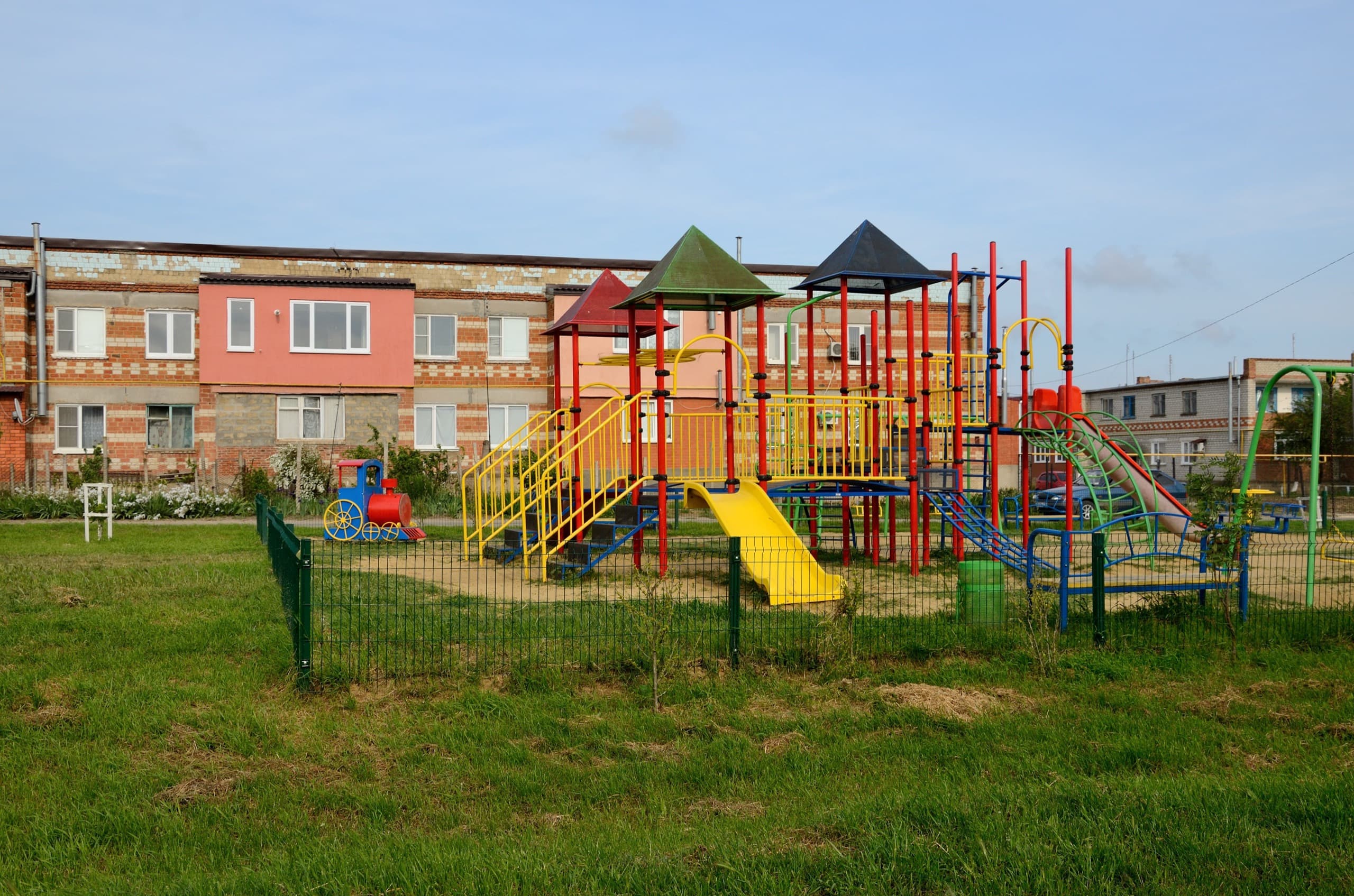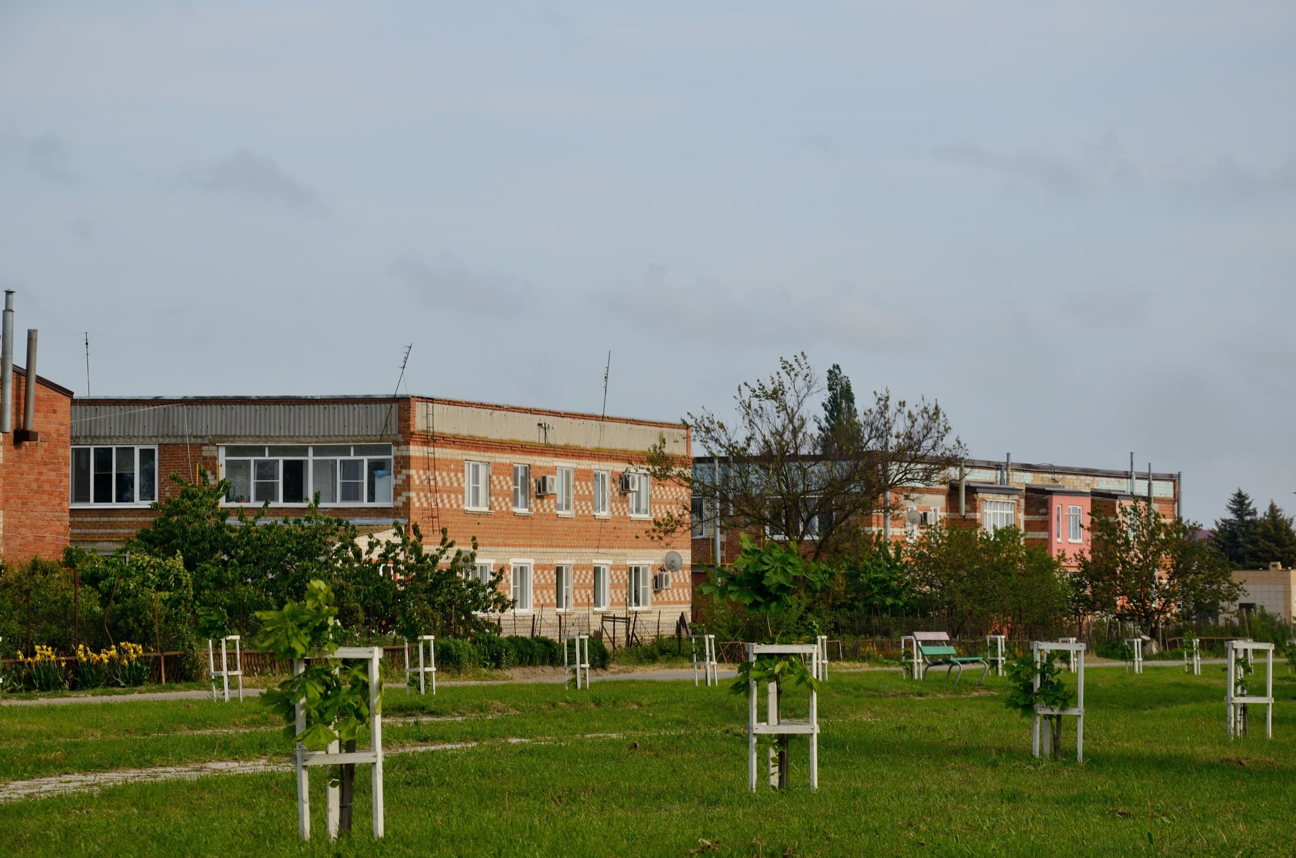 Юбилейный был построен в 1970 году, угадайте, в честь чьего юбилея? Именно в 70-е в местных посёлках начали появляться многоквартирные двухэтажки, которые для местных жителей оказались в диковинку и они прозвали их «муравейниками». Наивные, это они ещё настоящих «муравейников» не видели! Тем не менее сегодня один-два, а иногда и пара десятков подобных домов найдётся практически в каждом посёлке или станице. Иногда они кирпичные, иногда беленные, некоторые с плоской крышей, другие с четырёх-, реже двухскатной крышей.