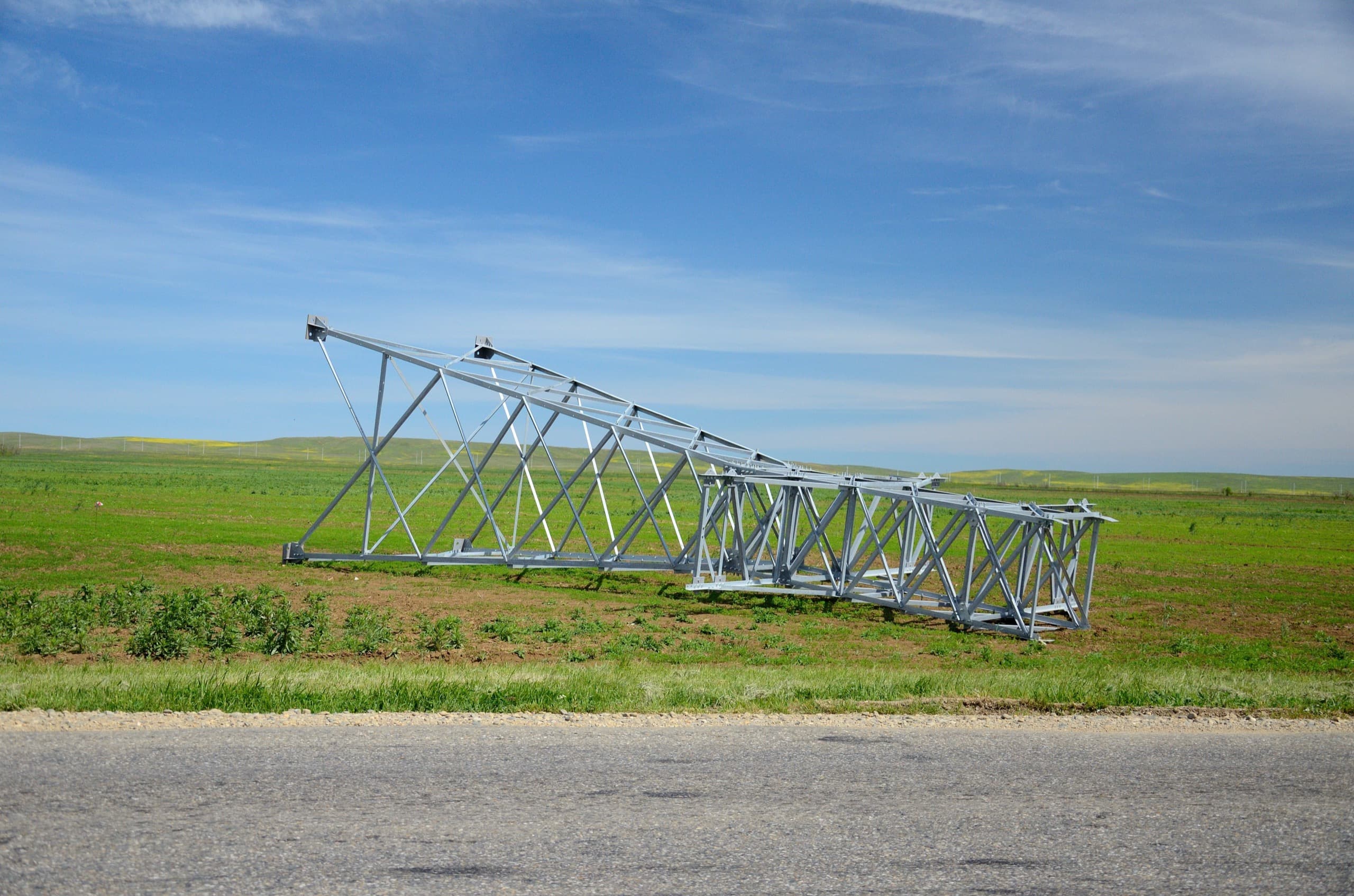 По пути встречаем прилёгшие отдохнуть опоры ЛЭП.