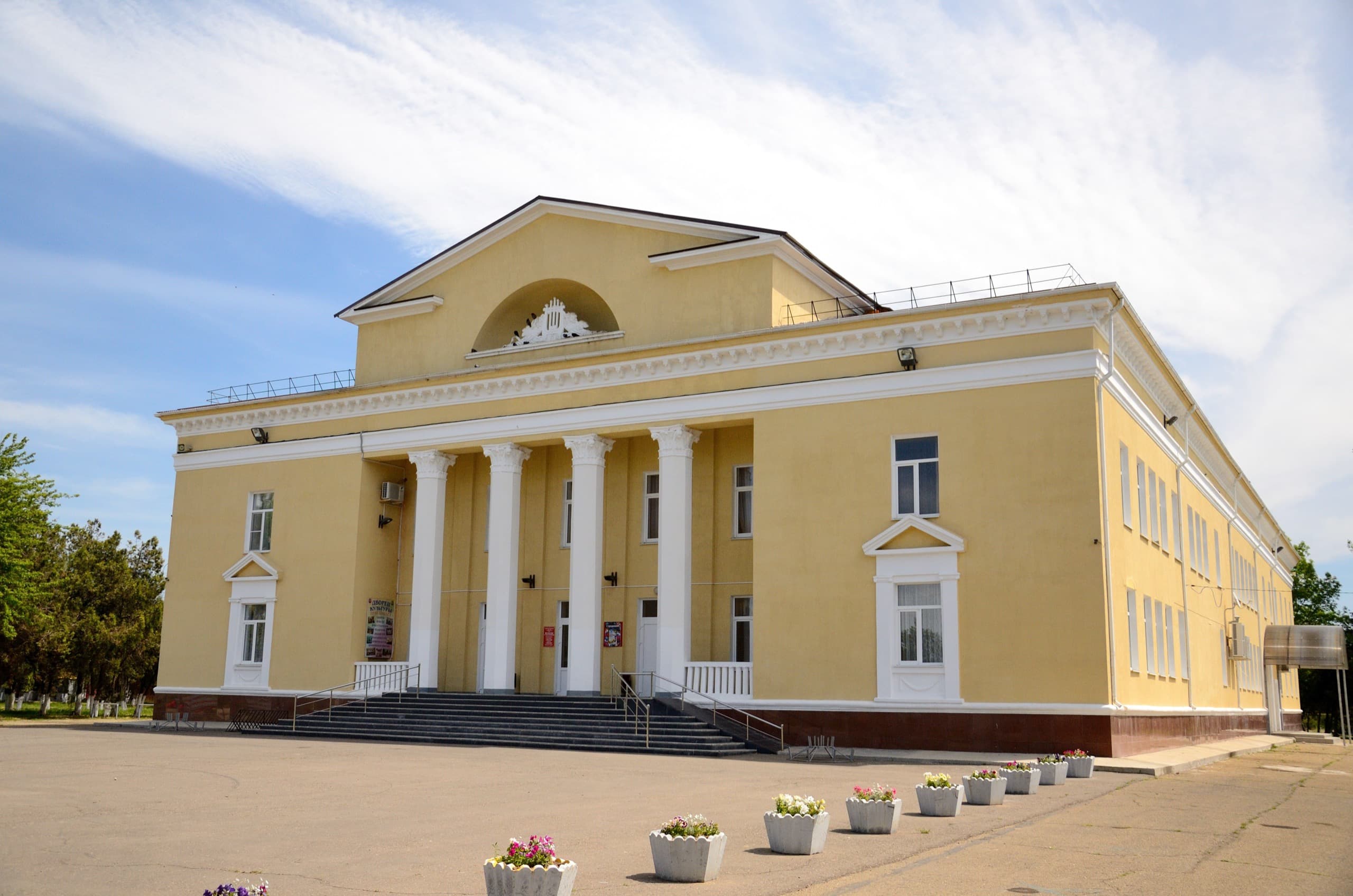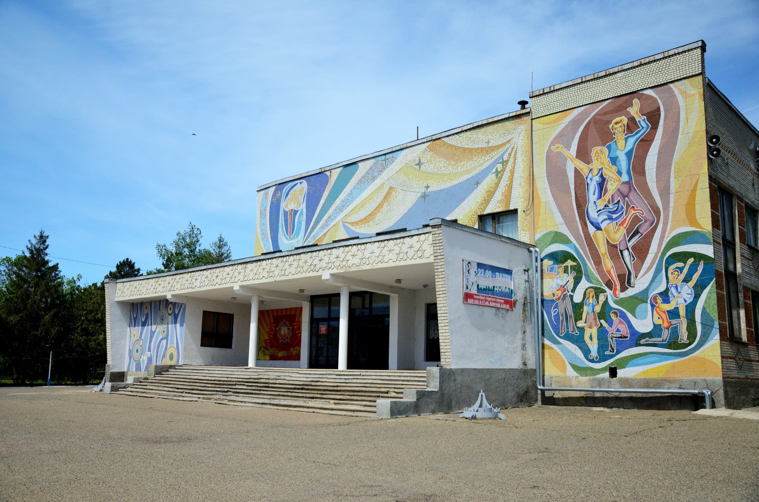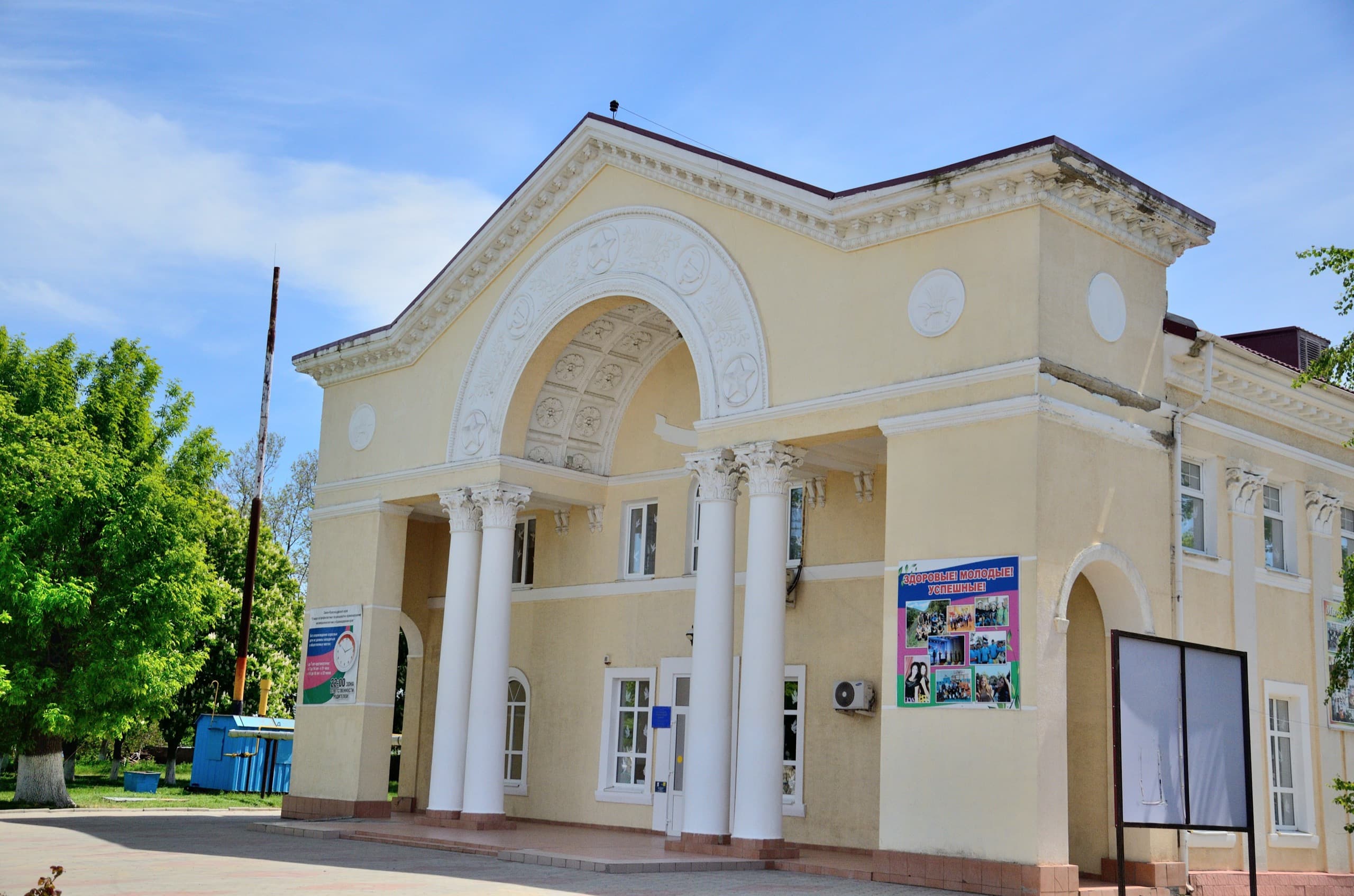 И вот за что спасибо Вышестеблиевской, так это за невероятно классный дом культуры. А что нужно для того, чтобы он был таким классным? Просто не загаживать его уродливыми пропагандистскими баннерами и не делать пластиковые пристройки — привет, Темрюк.