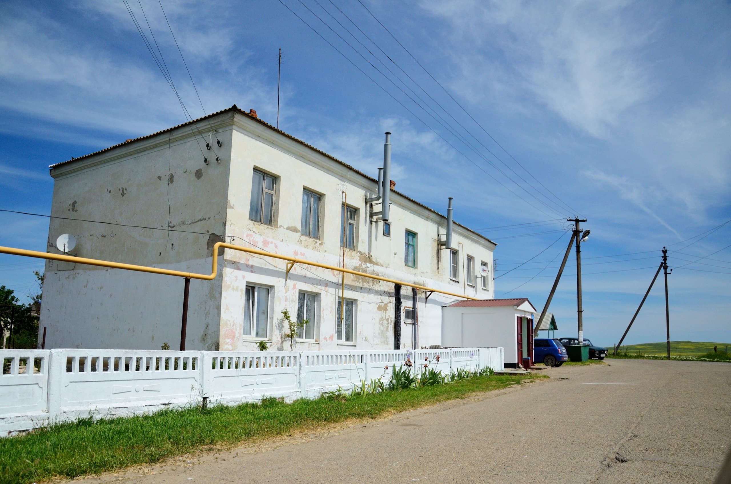 Единственная двухэтажка, которую попробовали привести в порядок. Не самый оригинальный и стильный ремонт, но по сравнению с остальными прелестно.