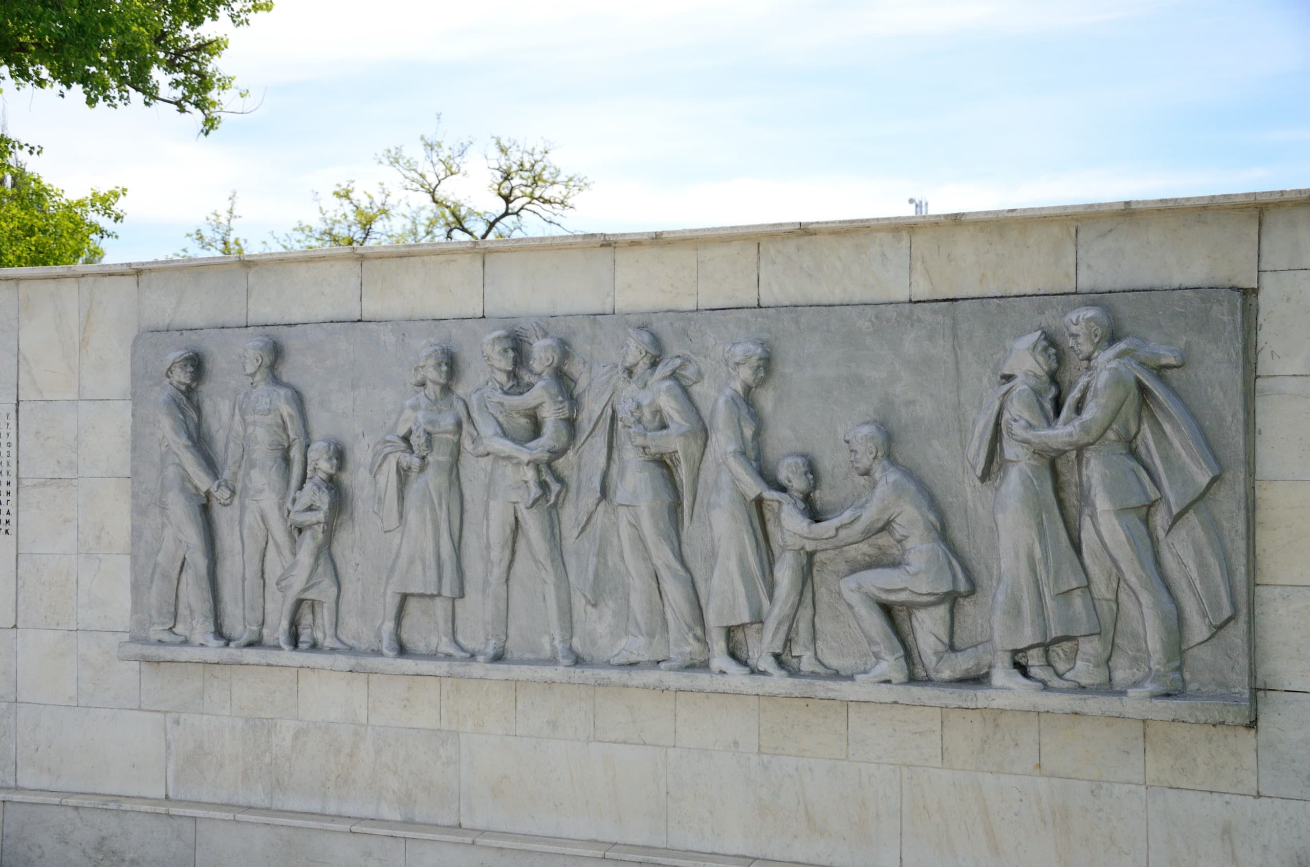 На дежурном монументе в честь победы неожиданно классный барельеф. Тысяча плюсов таким авторам, кто трогал момент человеческой трагедии войны, а то приторно-героические сюжеты уже давно никаких чувств не вызывают.
