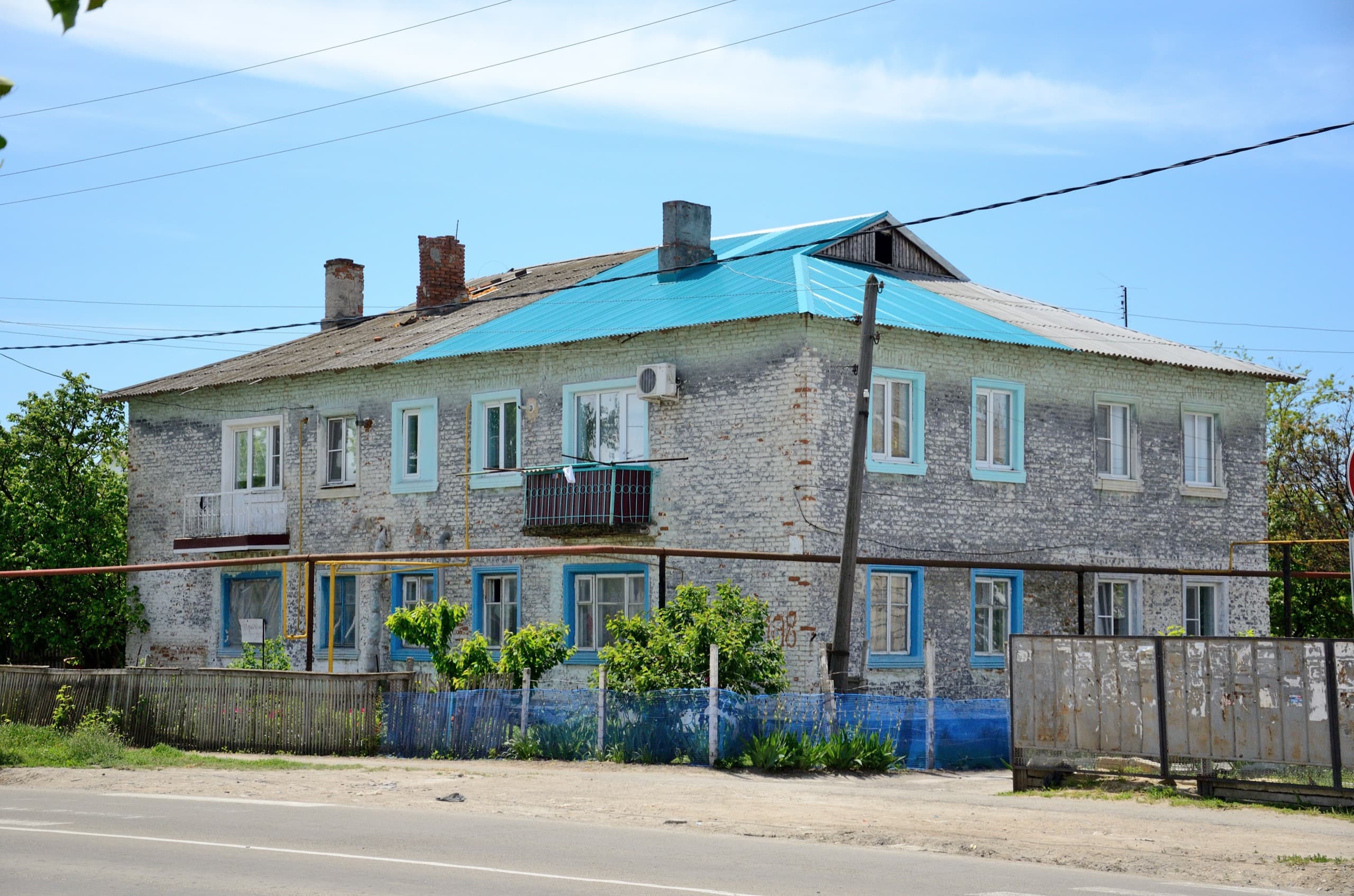 В Старотитаровской есть невероятный дом. Рассматриваем подробнее. Одна угловая квартира отремонтировала над собой крышу и выкрасила в её цвет наличники на окнах. Другая, под ней, поставила синий забор и также покрасила окна в цвет забора, при этом не совпадающий с крышей и окнами выше. У других квартир денег меньше, оттого и крыша осталась старой и забор покосившимся. Ярчайшая иллюстрация к поговорке: «моя хата с краю, ничего не знаю».
