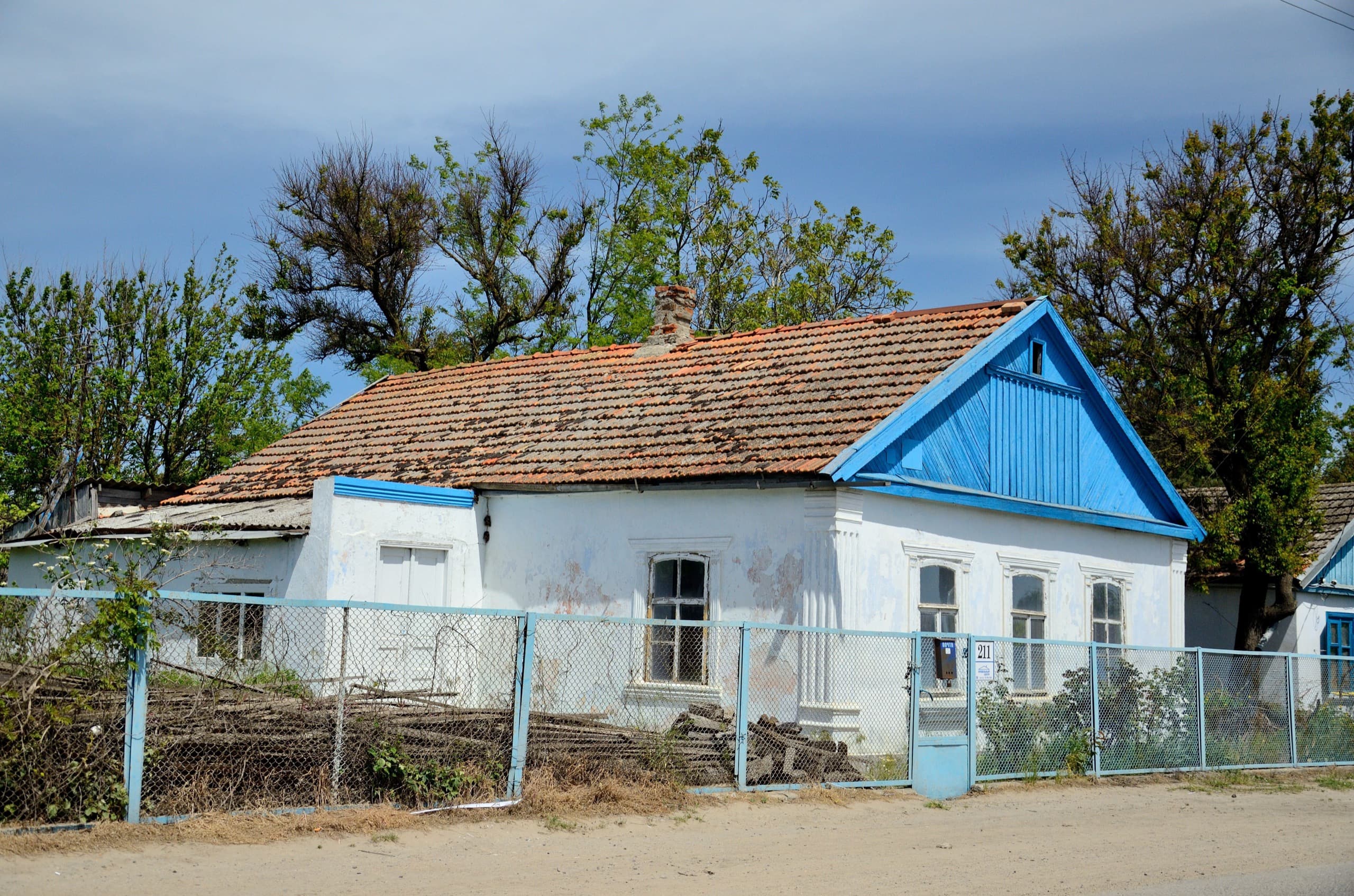 Милый дом с настоящей черепицей, находящийся в удручающем состоянии. Любопытно, что я во время прошлой поездки в Тамань отметил обилие черепичных крыш. Но подробное обследование остальных посёлков и станиц показало, что Тамань одинока. В остальных населённых пунктах такая красота почти не встречается.