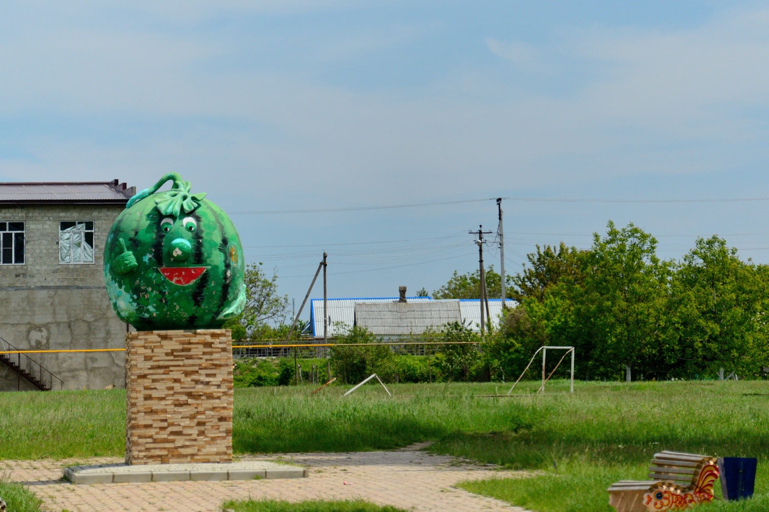 Самое ужасное, что есть в Виноградном — это лавочки. Остаётся неизвестным, что пытался изобразить автор, но композиция явно не удалась.