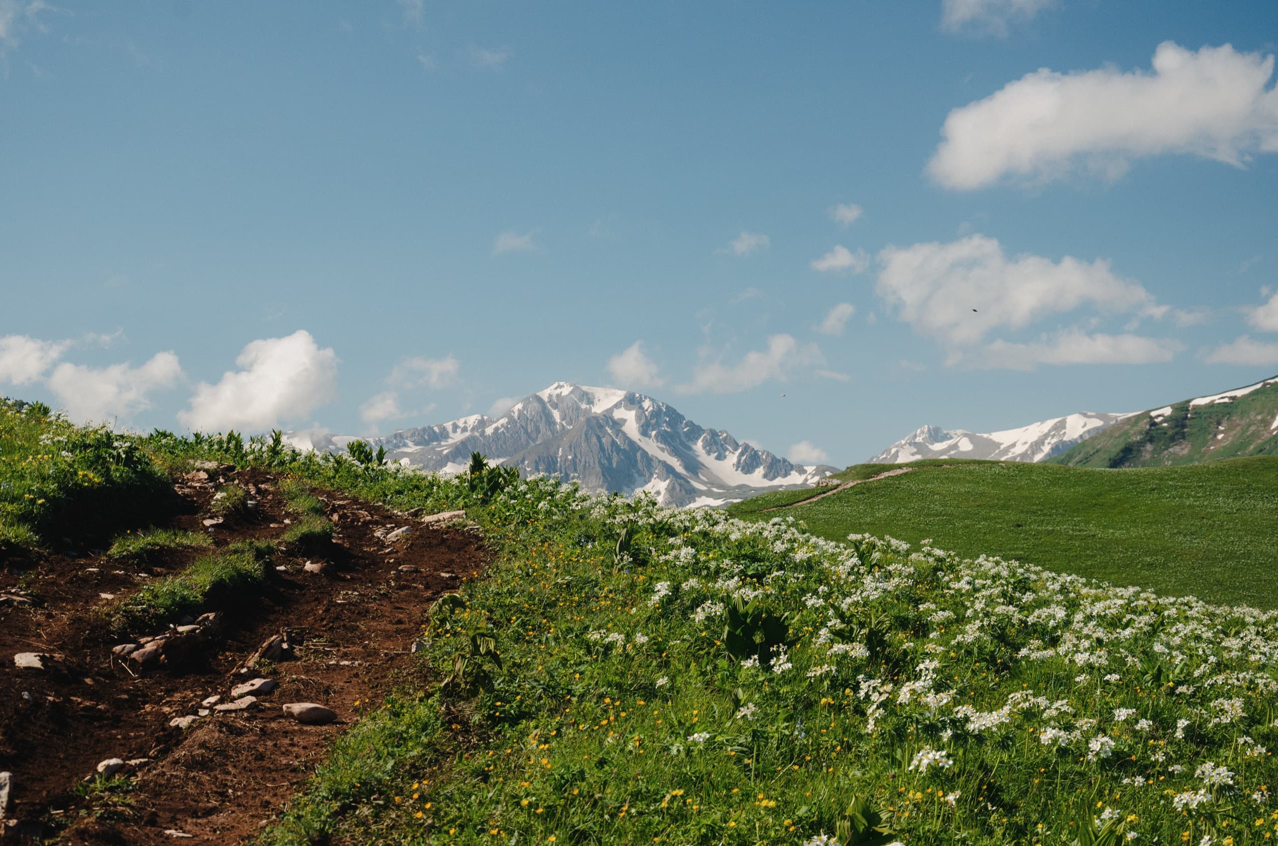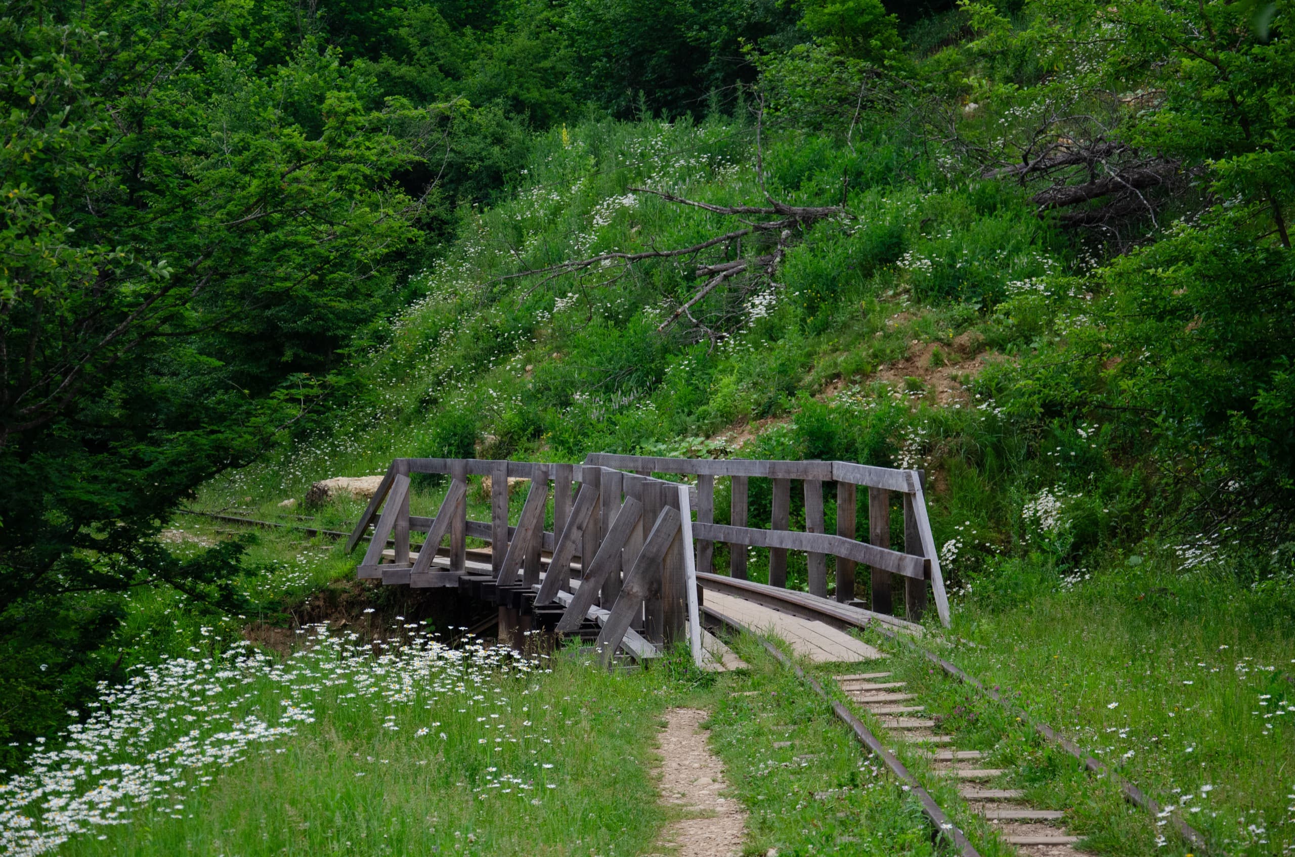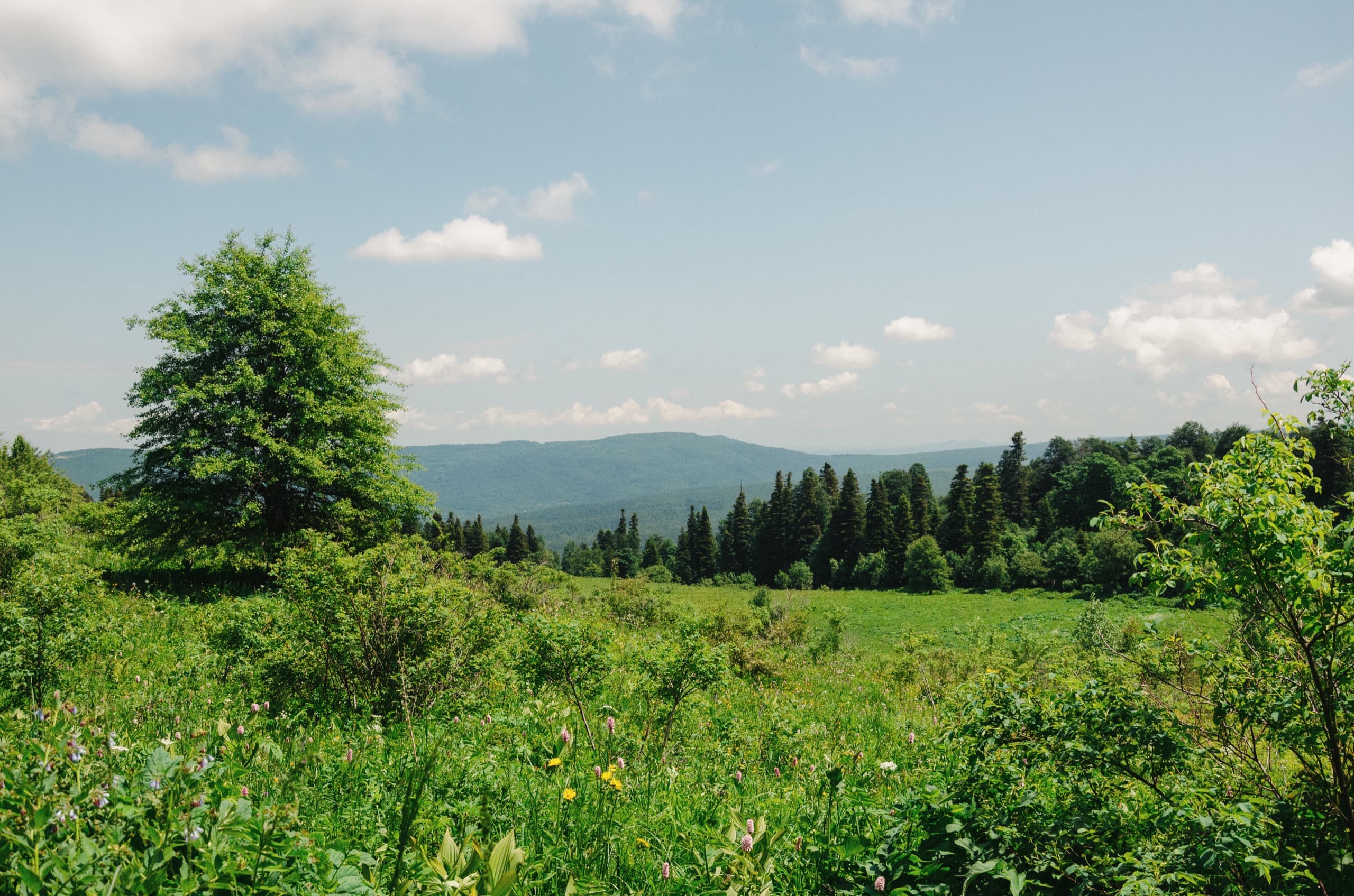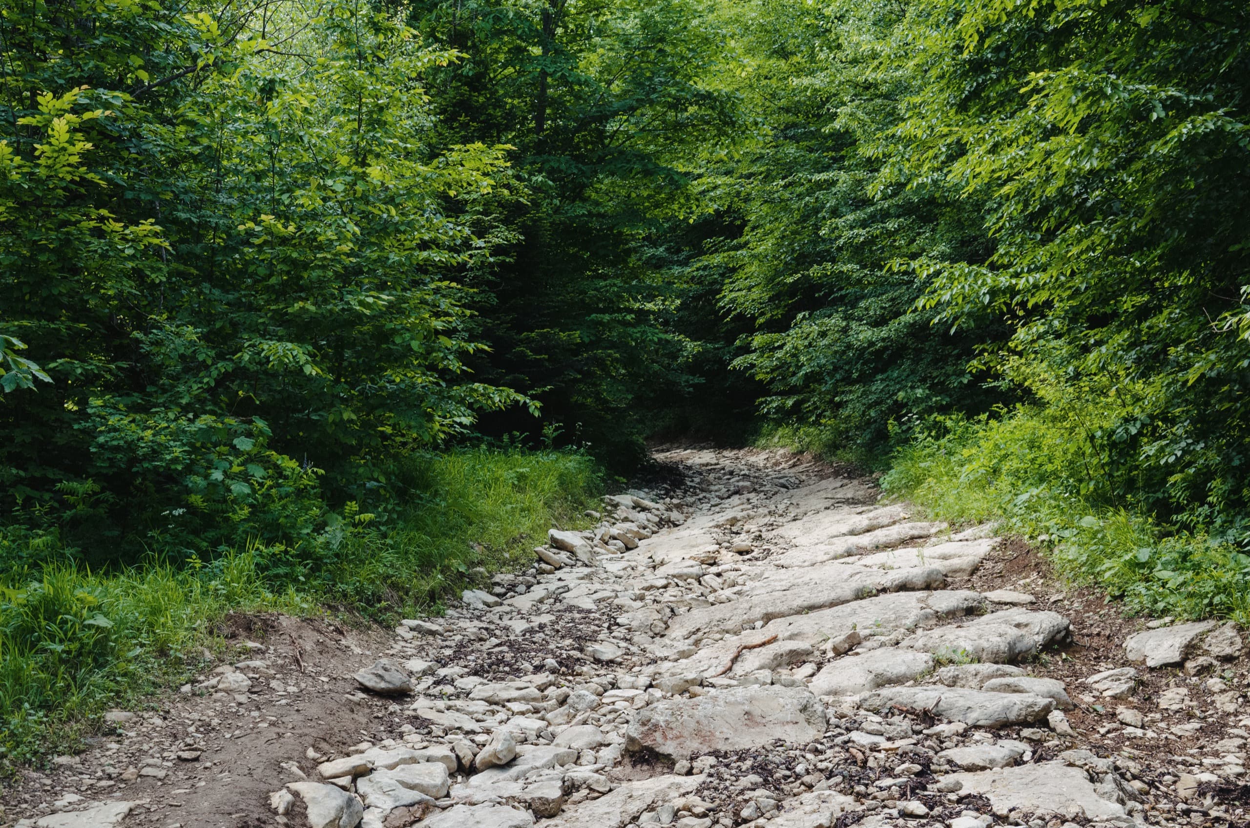 Первые три километра пешей части маршрута продолжали идти в лесу. Каменистая дорога под ногами плавно набирала высоту. Через какое-то время по обочинам начали появляться первые поляны. Большинство из них стояли заросшие высокой, по грудь и выше травой.