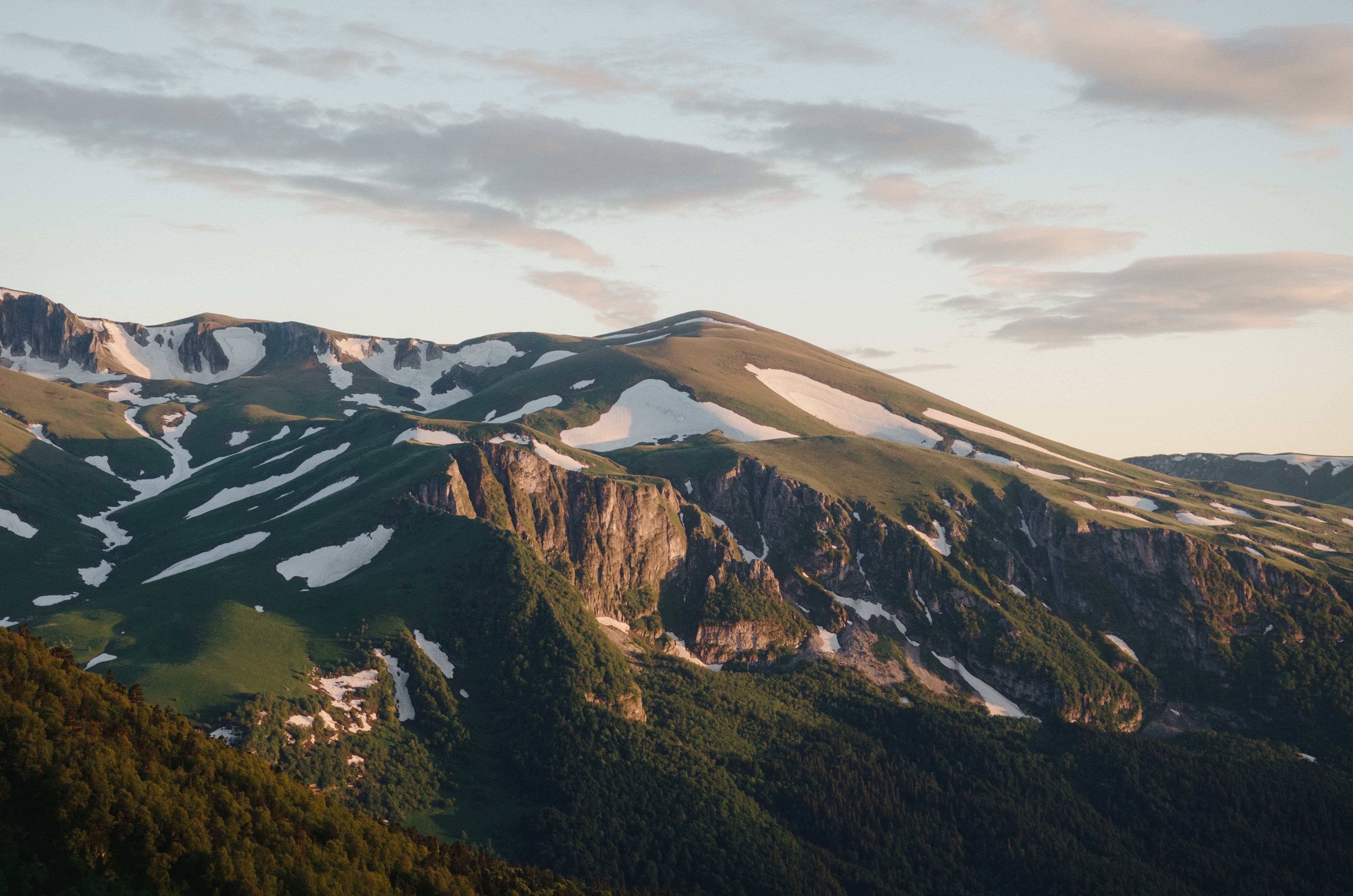 Фото 2. Вид на Лагонакское нагорье с трассы под Апшеронском. Крайняя справа (чуть пониже остальных) выделяется гора Мессо (2066 м)