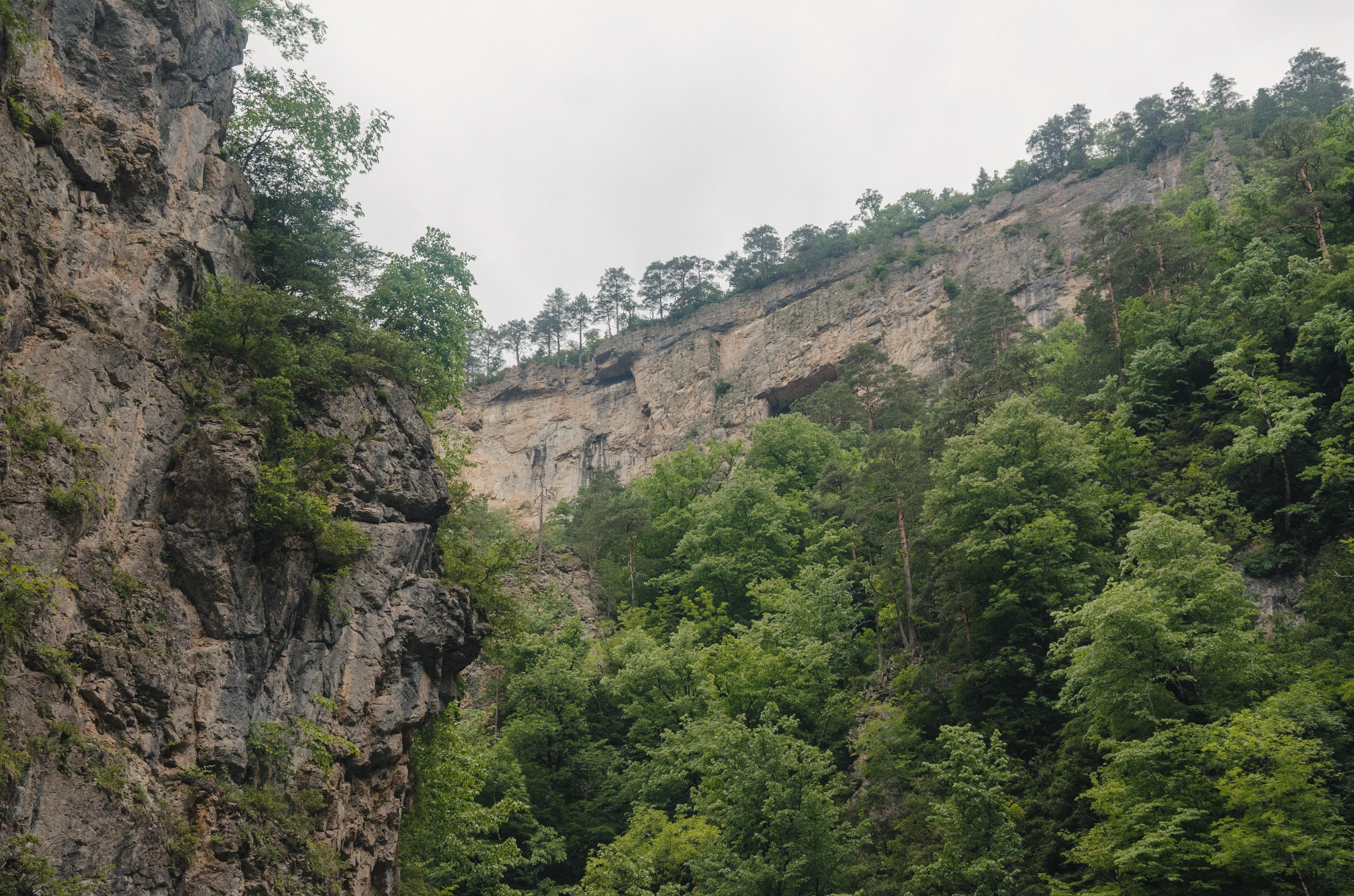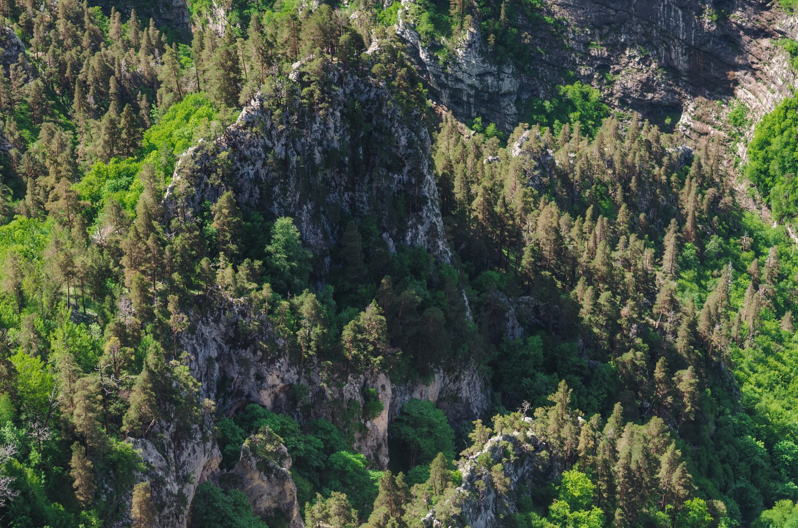 Гуамское ущелье величественно, в самой крутой его части стены становятся практически отвесными, поднимаясь на сотни метров вверх. Огромные деревья под верхней кромкой обрывов кажутся маленькими спичками. Стоит отметить, что в ущелье и его окрестностях невероятно разнообразна древесная растительность: можжевельники, дубы, сосны, пихты, грабы и многие другие — почти каждое встречающееся на Кавказе дерево можно найти здесь.