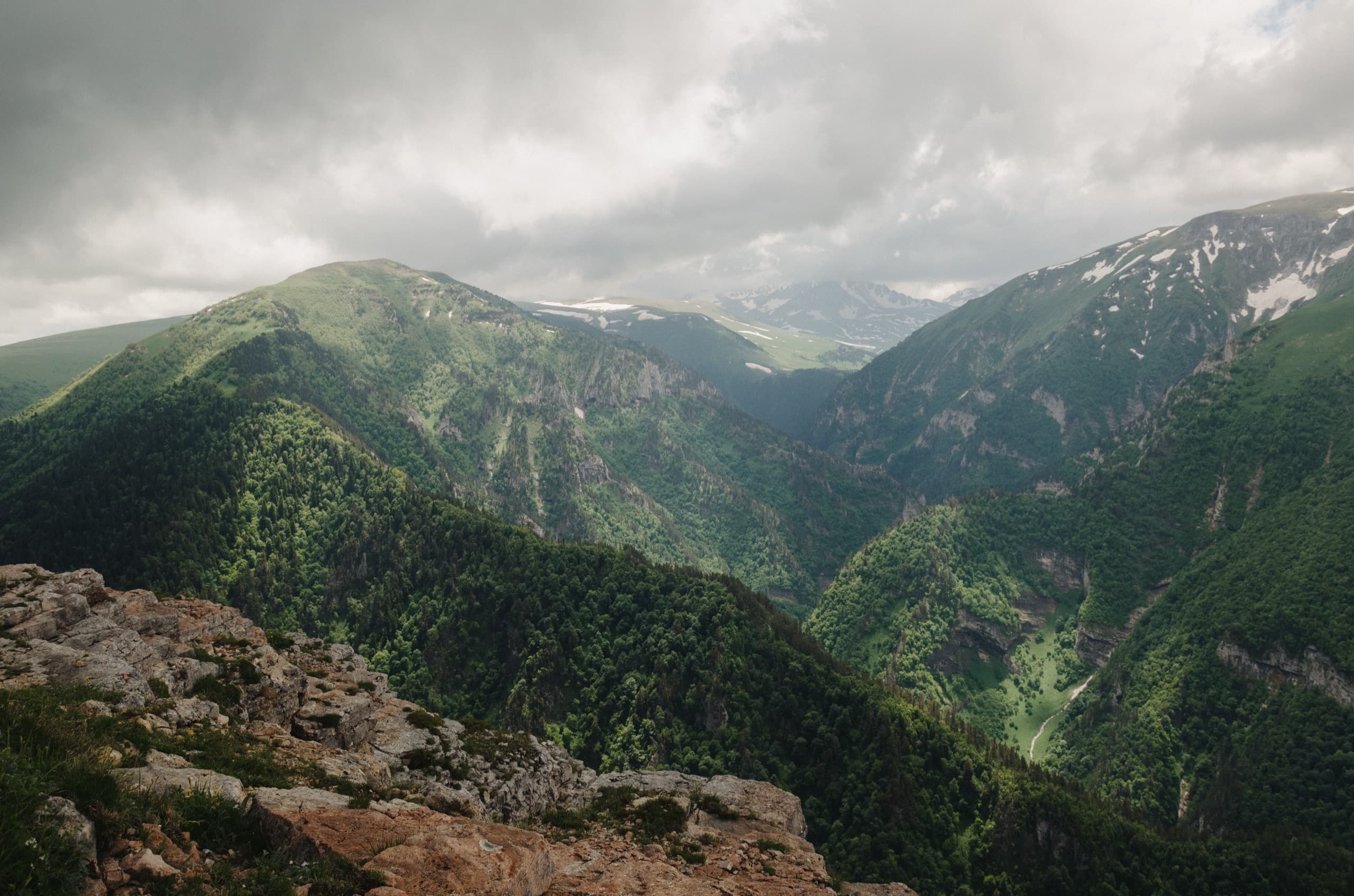Со склонов Житной открылся прекрасный вид. Я смотрел на обрывающиеся к долине реки Цице склоны хребта Нагой-Чук. Он является одной из ключевых частей Лагонакского Нагорья. Высоты по ту сторону каньона перешагивали двухтысячную отметку. Мне же, чтобы её преодолеть понадобилось бы стать кому-нибудь на плечи и подпрыгнуть: высота Житной — 1995 метров.
