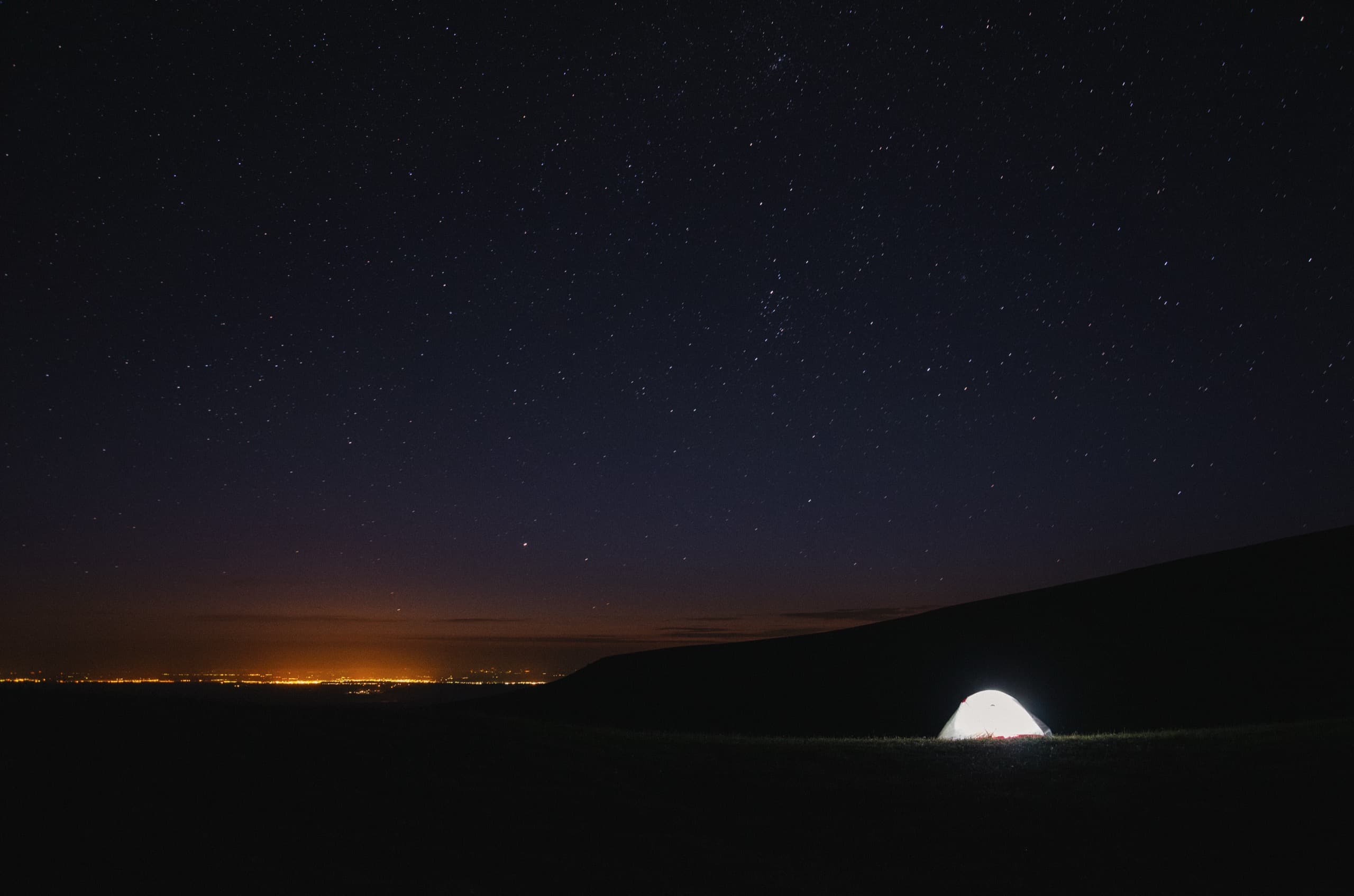 Фото 59. Звёздное небо, палатка и огни Майкопа.