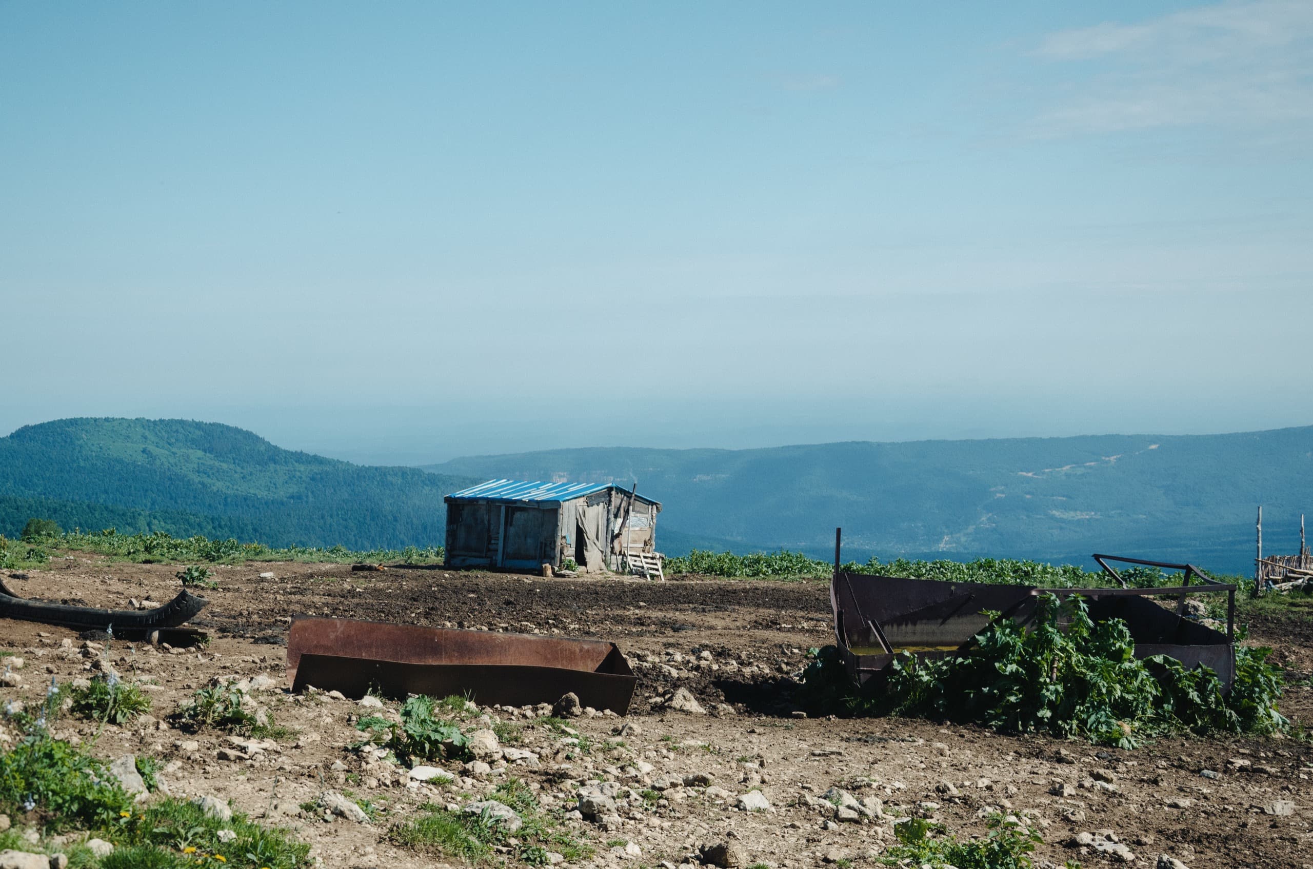 У подножия горы нашли хороший пастуший домик. Остаться бы у него — время шло к обеду, а мы стали подниматься наверх, несмотря на хмурое небо.