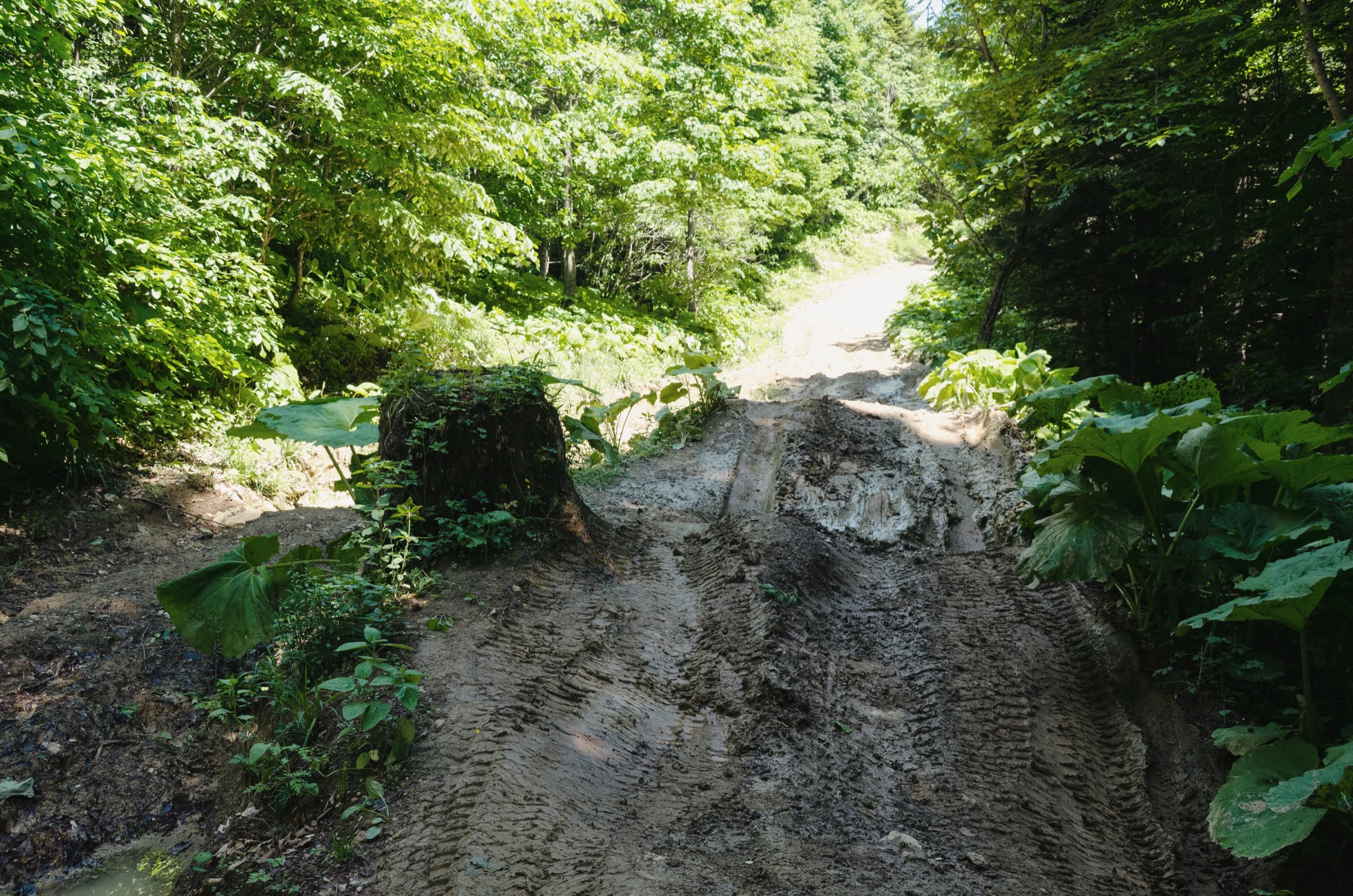 После Ивановых полян нас ждали три часа спуска по грязной, невероятно грязной, предельно отвратительной лесной дороге. Никаких видов, только лес и грязь.