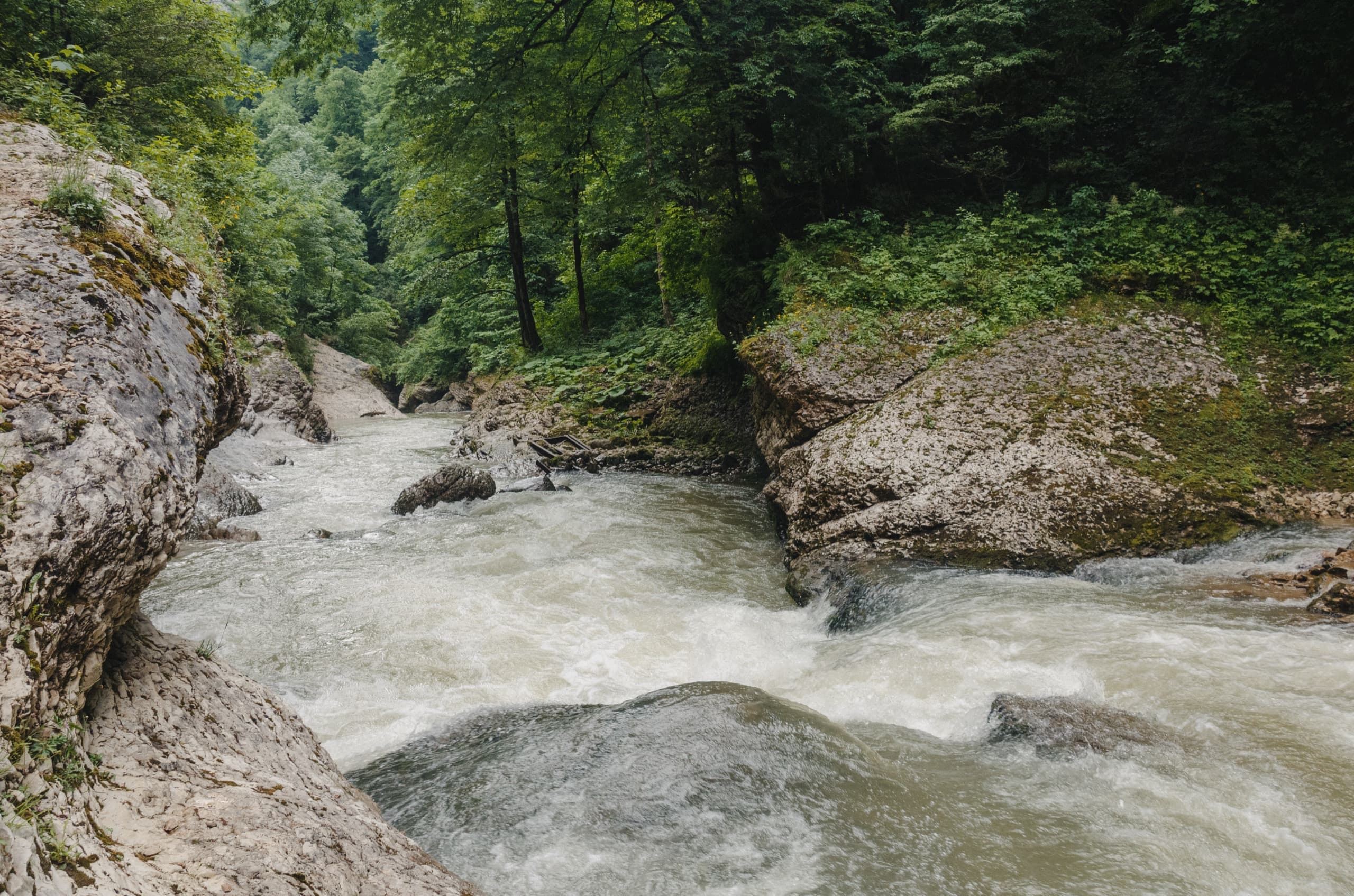 Под ногами ревела Курджипс. В июне эта река была полноводной как никогда. Как я писал выше, Курджипс берёт своё начало из-под склонов горы Абадзеш и, наполняясь многочисленными притоками, уже совсем скоро превращается в одну из мощнейших рек района. Возле Майкопа река впадает в Белую и оттуда её воды через Кубань попадают в Азовское море. Общая длина Курджипс достигает ста километров!