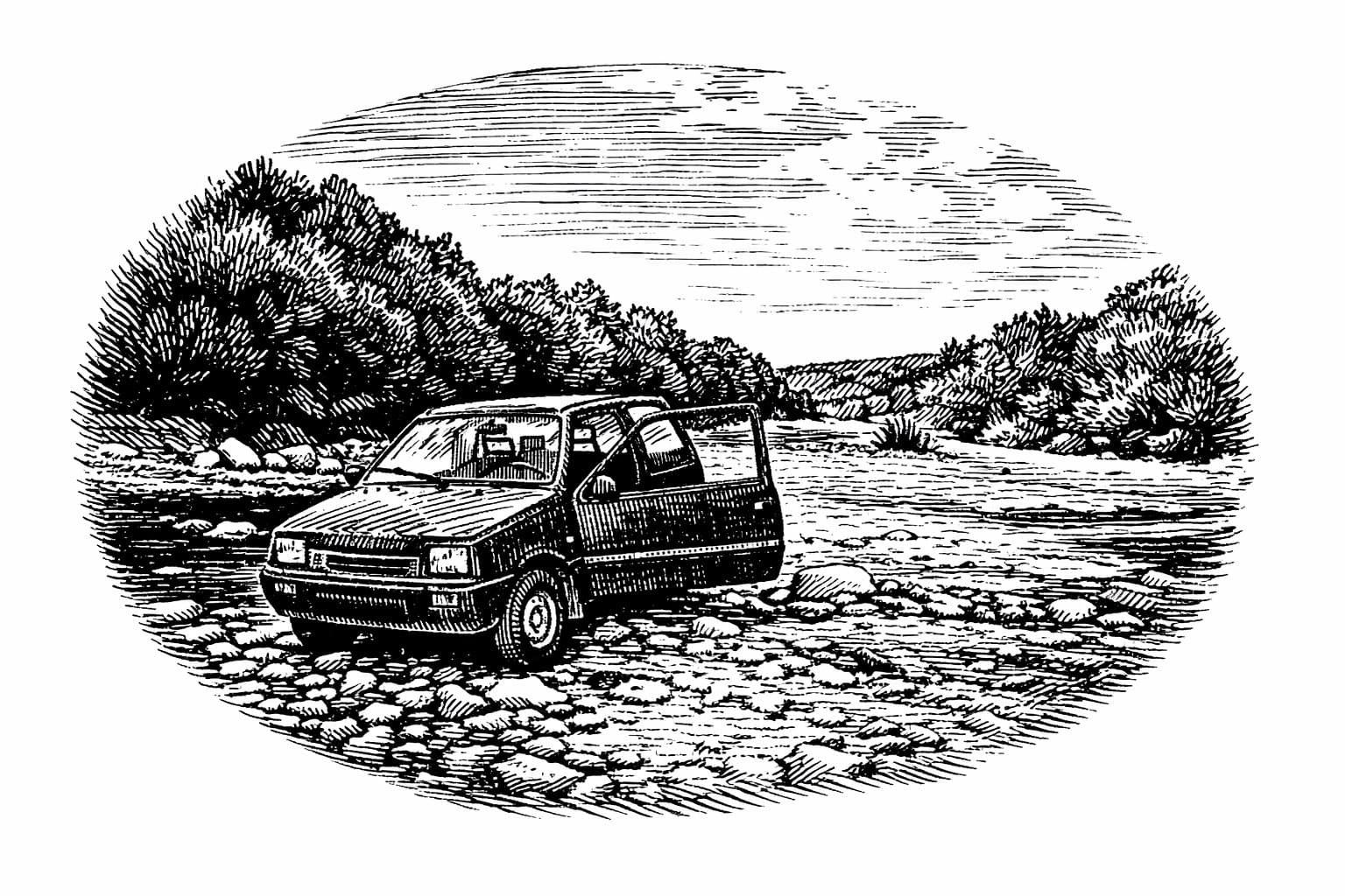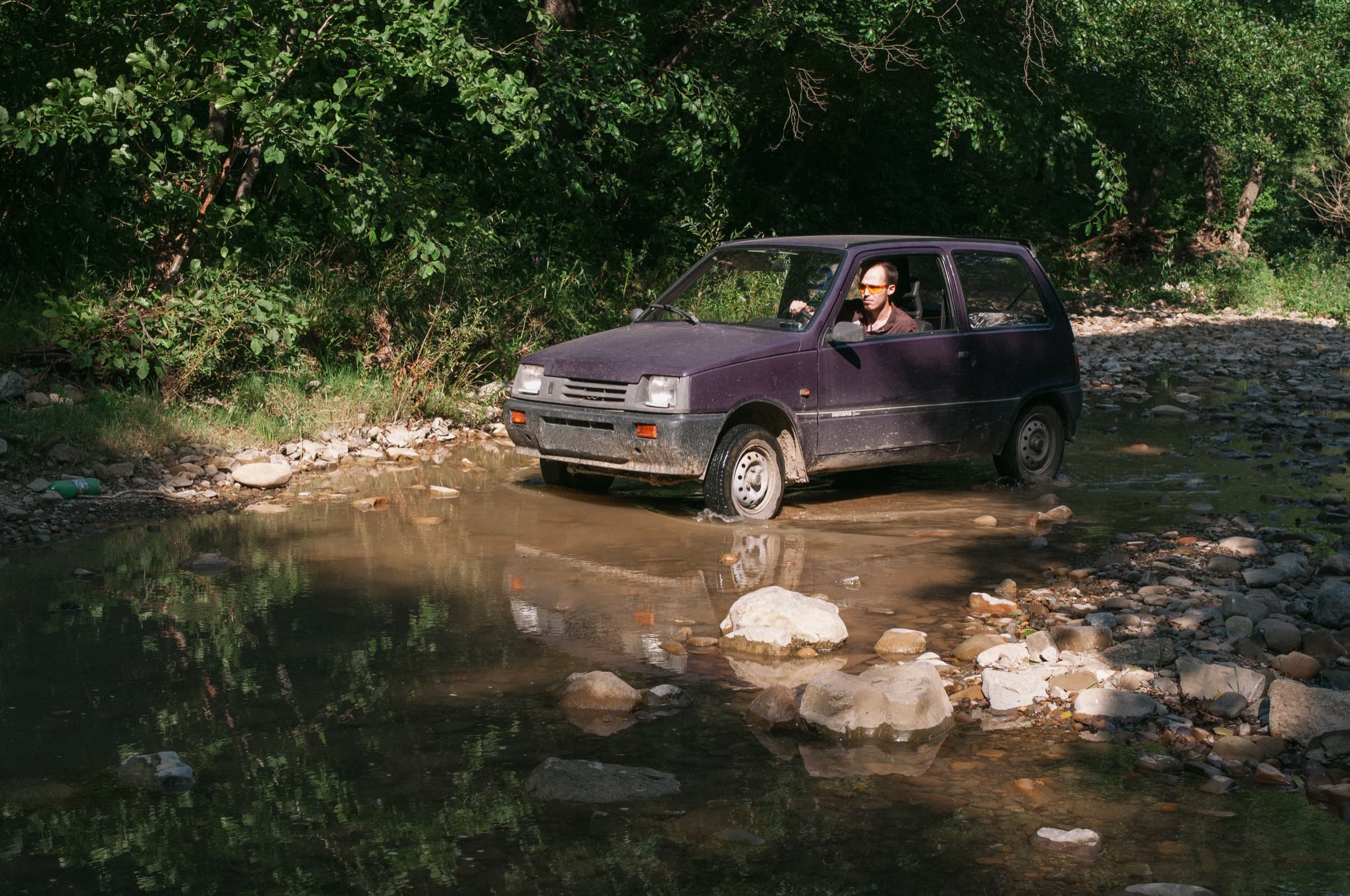 Поехали за станицу в горы. Без конкретной точки, просто решили заехать настолько далеко, насколько получится на нашей маленькой легковушке. В этот раз «Ока» продержалась мало, чуть больше километра — дальше только на джипах. Там, где остановились, сделали небольшой привал у реки Иль и отправились назад.