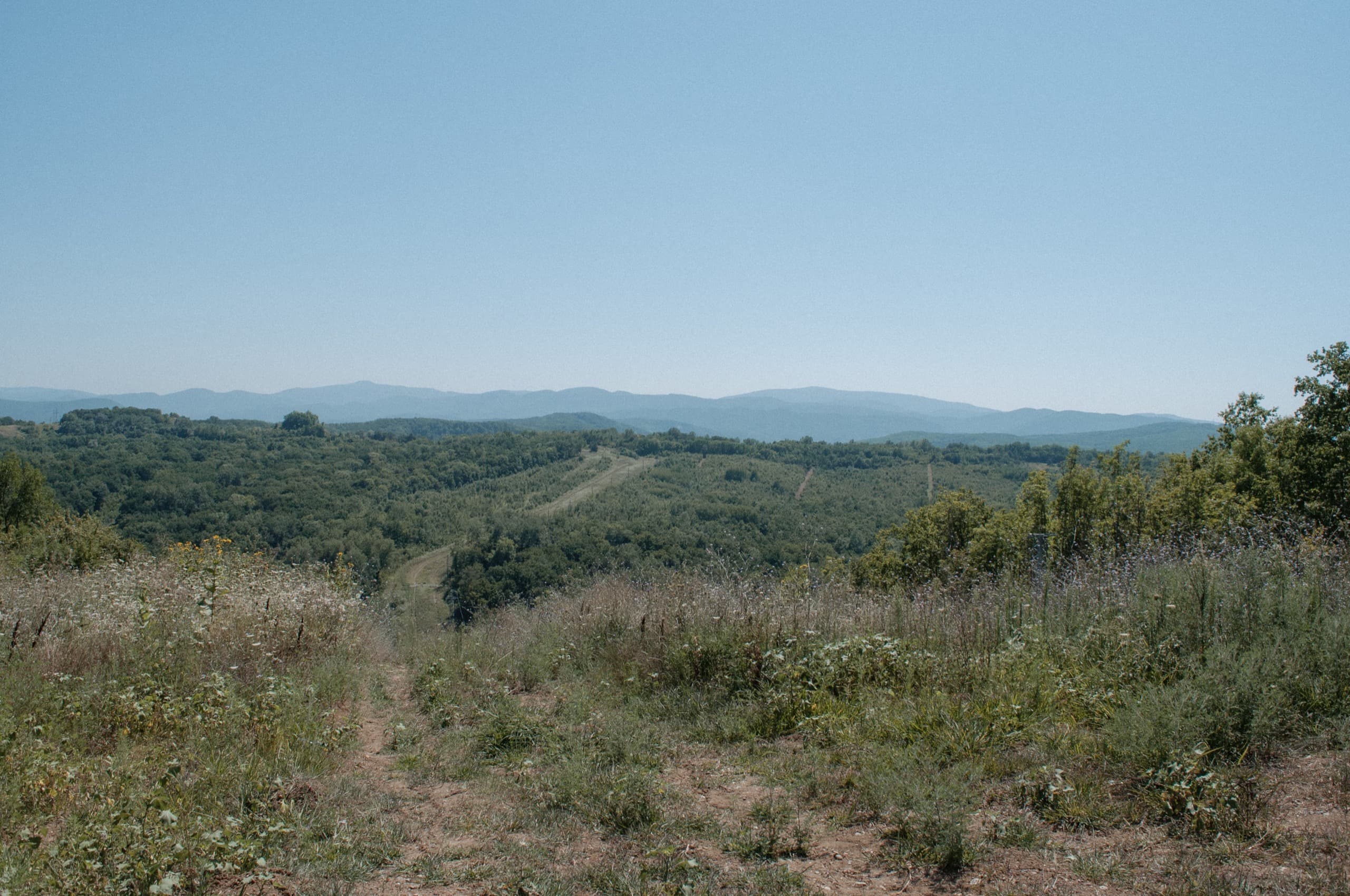 Как раз там, где свежий асфальт закончился, а вниз к посёлку повёл крутой грейдерный спуск, мы остались наверху, закатившись на поляну, прямо к лагерю астрономов.