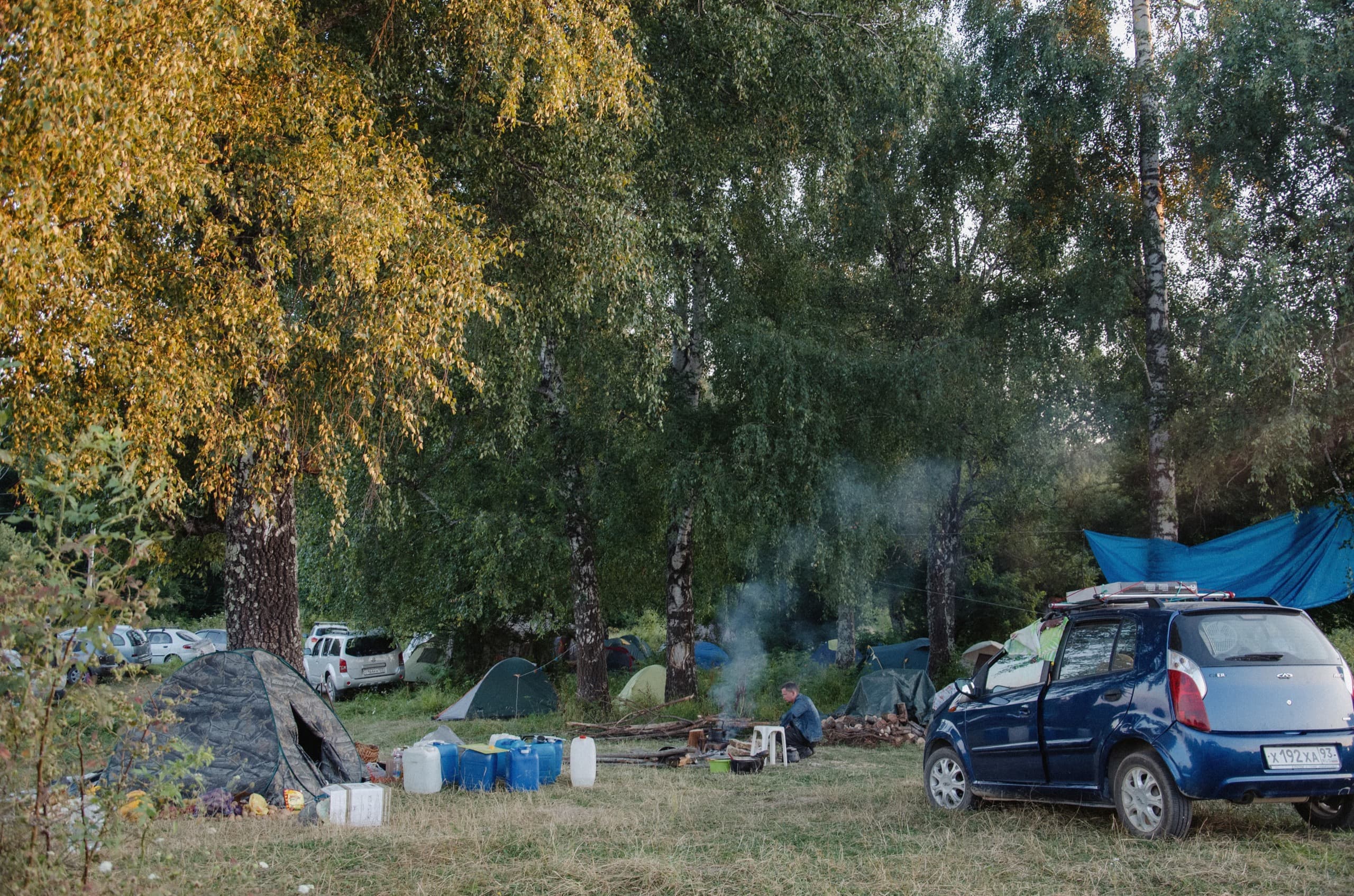 Кристально чистое небо обещало хорошие звёзды, но пока его синева была занята солнцем стоило поискать место для лагеря. Мы на этом мероприятии явно были гостями, поэтому не стали мешать и тактично поставили палатку в стороне, недалеко от съезда с трассы.
